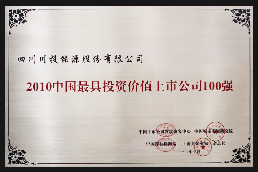近年來,川投能源備受資本市場(chǎng)和社會(huì)各界青睞,連續(xù)入選滬深300指數(shù)樣本股、中證800指數(shù)樣本股、上證380指數(shù)樣本股、MSCI新興市場(chǎng)指數(shù)、MSCI ACWI全球指數(shù),同時(shí)作為首批中國A股股票納入富時(shí)全球股票指數(shù)系列和標(biāo)普新興市場(chǎng)全球基準(zhǔn)指數(shù);先后獲得“中國證券市場(chǎng)年會(huì)金鳳凰獎(jiǎng)”、“中國上市公司市值管理百家優(yōu)秀公司”、“最守誠信上市公司”、“最具投資價(jià)值上市公司”、《上海證券報(bào)》“公司治理資本創(chuàng)新公司獎(jiǎng)”等榮譽(yù);獲得中華全國總工會(huì)授予的“抗震救災(zāi)恢復(fù)重建工人先鋒號(hào)”、“全國汶川地震災(zāi)后恢復(fù)重建先進(jìn)集體”;1998—2011年連續(xù)13年獲得“四川省重合同守信用先進(jìn)單位”稱號(hào);2011年8月,榮獲“全國模范勞動(dòng)關(guān)系和諧企業(yè)”稱號(hào);2011年11月,在《每日經(jīng)濟(jì)新聞報(bào)》聯(lián)合多家媒體和116家機(jī)構(gòu)評(píng)委傾力打造的全國上市公司“口碑榜”評(píng)選中,被代表市場(chǎng)2萬億元資金的廣大投資者評(píng)選為“最具成長潛力上市公司”;2011年12月,榮獲上海證券交易所評(píng)選的中國公司治理最高榮譽(yù)——“2011年度董事會(huì)獎(jiǎng)提名獎(jiǎng)”、“2011年度典型并購重組案例獎(jiǎng)提名獎(jiǎng)”;2012年9月,川投能源黨委榮獲“全省創(chuàng)先爭優(yōu)先進(jìn)基層黨組織”稱號(hào); 2015年公司還獲得了由中國上市公司協(xié)會(huì)、中國證券投資者保護(hù)基金公司、上海證券交易所、深圳證券交易所、中國證券業(yè)協(xié)會(huì)、中國證券投資基金業(yè)協(xié)會(huì)聯(lián)合頒發(fā)的“2015中國最受投資者尊重的上市公司”入圍獎(jiǎng)。2022年6月,入選中國上市公司協(xié)會(huì)“2021年度A股上市公司現(xiàn)金分紅榜單豐厚回報(bào)榜”;2023年11月獲得中國證券報(bào)頒發(fā)的“第二十五屆上市公司金牛獎(jiǎng)·2022年度金信披獎(jiǎng)”;2024年10月被證券時(shí)報(bào)評(píng)選為“主板上市公司價(jià)值100強(qiáng)”。主體信用等級(jí)長期維持AAA,以優(yōu)良的業(yè)績持續(xù)回報(bào)投資人,受到國內(nèi)國際兩個(gè)市場(chǎng)的高度關(guān)注和價(jià)值認(rèn)可。