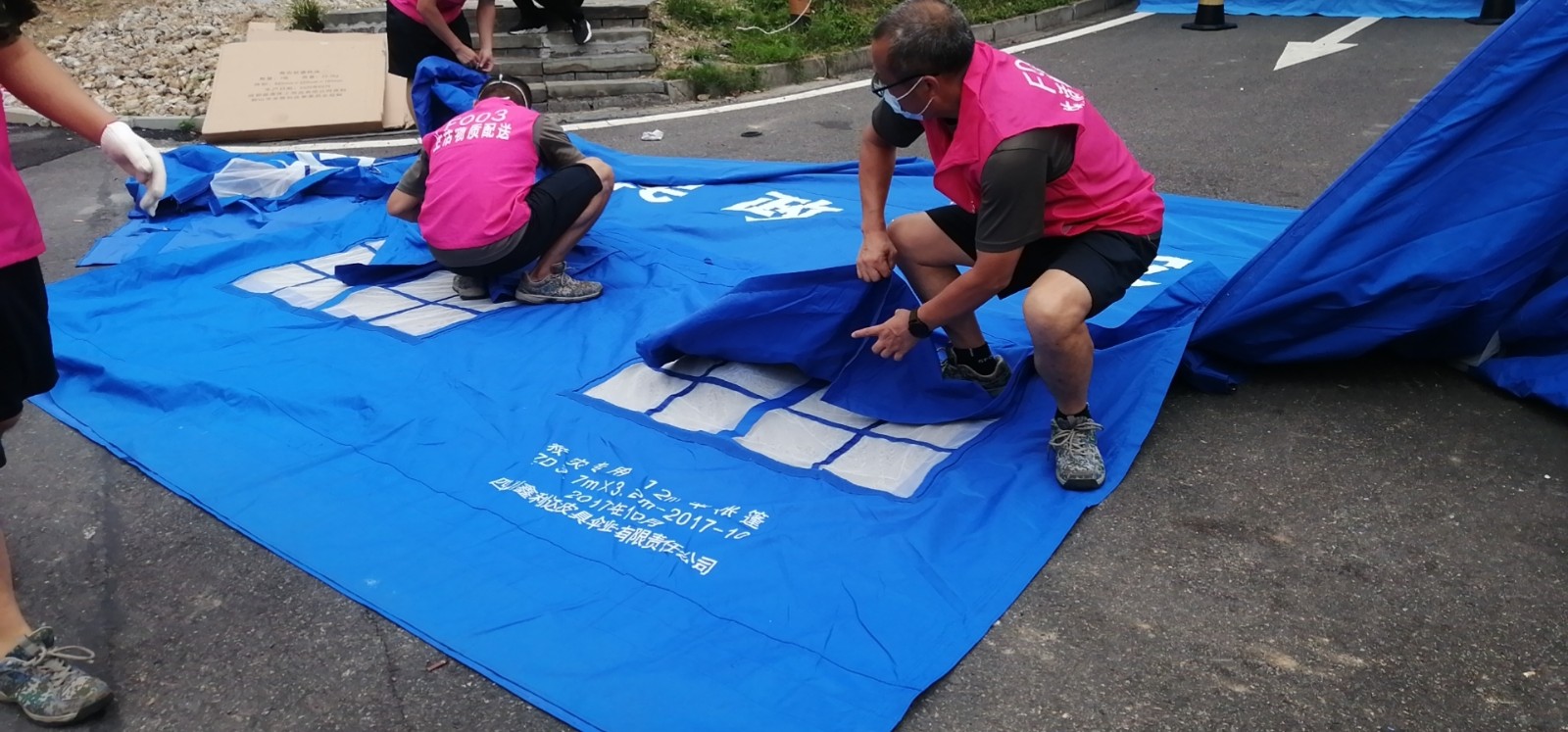 在當?shù)匾咔榉揽刂笓]部的帶領(lǐng)下,王成勇、祝長青,身披“志愿紅”,深入封控區(qū)域,從晨光熹微到燈火闌珊,一整天都是后背全濕,每一天都是腰酸背痛。但他們明白,“哪里需要就沖向哪里”。二人先后9次進入高風(fēng)險區(qū)搭建應(yīng)急帳篷,為的是這一頂頂帳篷能夠為來自四面八方、各行各業(yè)的志愿者們遮風(fēng)擋雨,每天一趟趟一袋袋的蔬菜、肉、米、油,讓當?shù)鼐用衽c游客每天都能夠安心避疫。