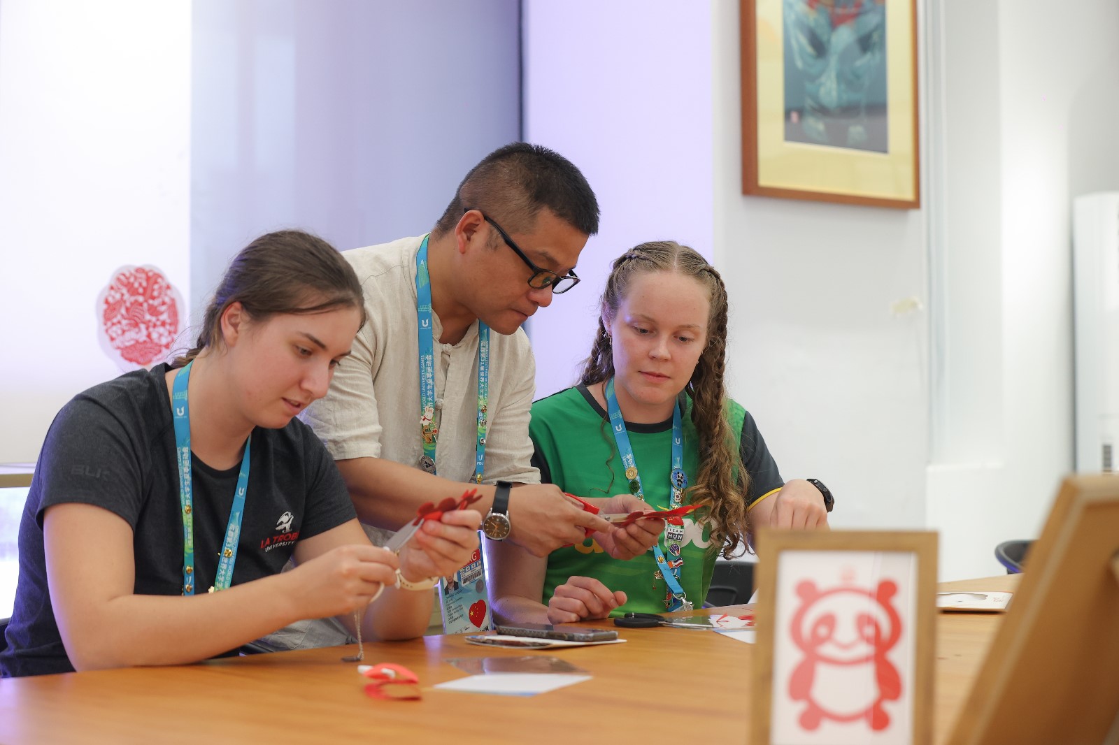 大運(yùn)會(huì)期間,成都大運(yùn)村里掀起一股“非遺熱”,引得各大媒體前來(lái)競(jìng)相報(bào)道。互動(dòng)體驗(yàn)中心里,神奇的剪紙也吸引了中外運(yùn)動(dòng)員們紛紛前來(lái)參與體驗(yàn)。