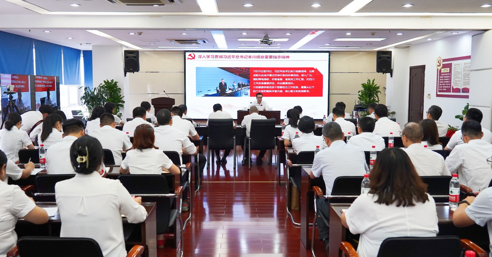 宣講報(bào)告會(huì)以“現(xiàn)場(chǎng)+視頻”形式召開,川投能源及所屬企業(yè)領(lǐng)導(dǎo)班子成員、中層以上管理人員、黨員代表共計(jì)170余人參會(huì)。
