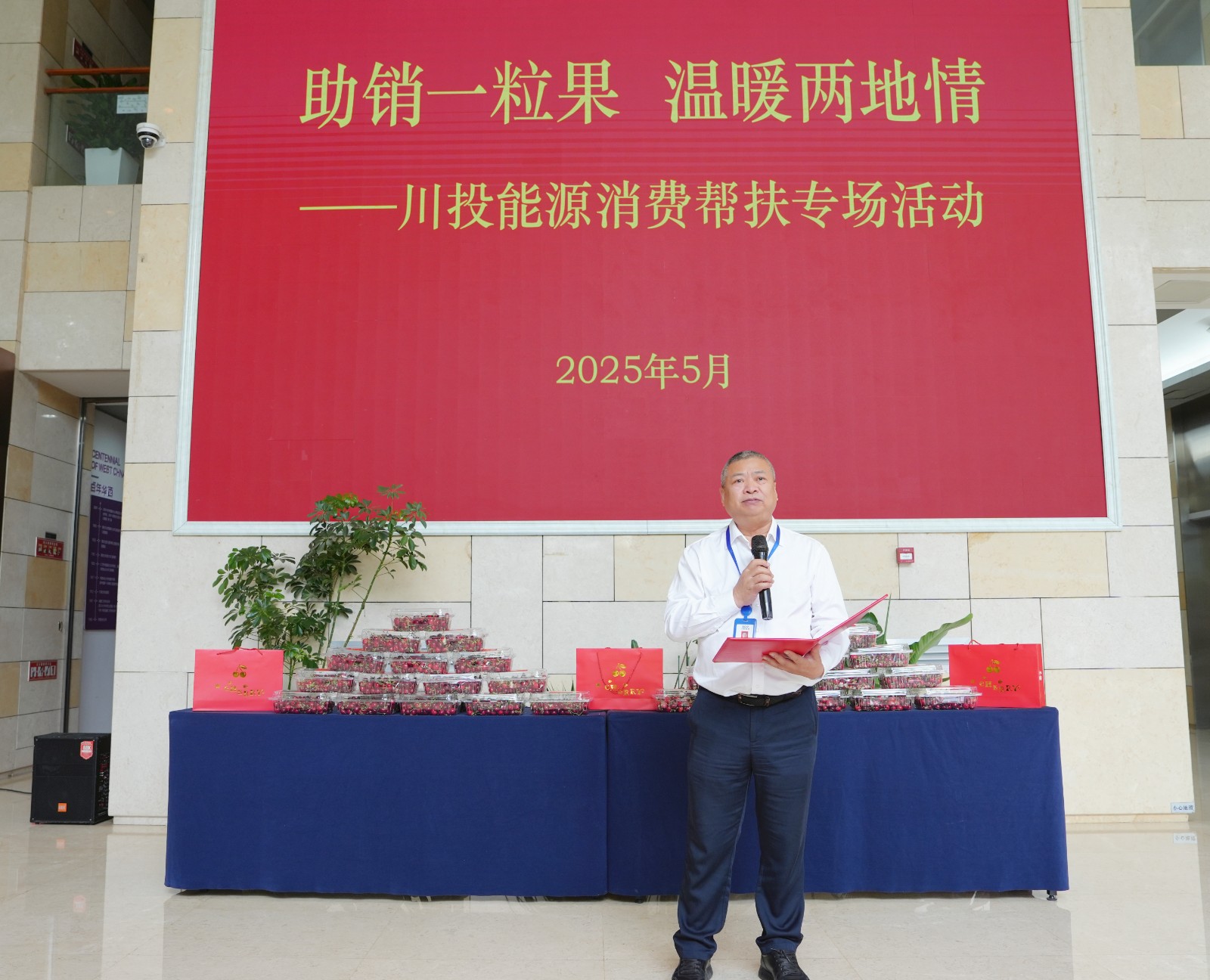 為鞏固拓展托底性幫扶工作成效,在助力鄉(xiāng)村振興中彰顯省屬國(guó)企的責(zé)任擔(dān)當(dāng),5月7日,川投能源與結(jié)對(duì)幫扶的儀隴縣馬鞍鎮(zhèn)、福臨鄉(xiāng)在成都舉辦“助銷一粒果 溫暖兩地情”消費(fèi)幫扶專場(chǎng)活動(dòng)。川投能源黨委書記、副董事長(zhǎng)、總經(jīng)理?xiàng)詈槌鱿顒?dòng)并致辭,儀隴縣副縣長(zhǎng)林雪松致感謝辭。