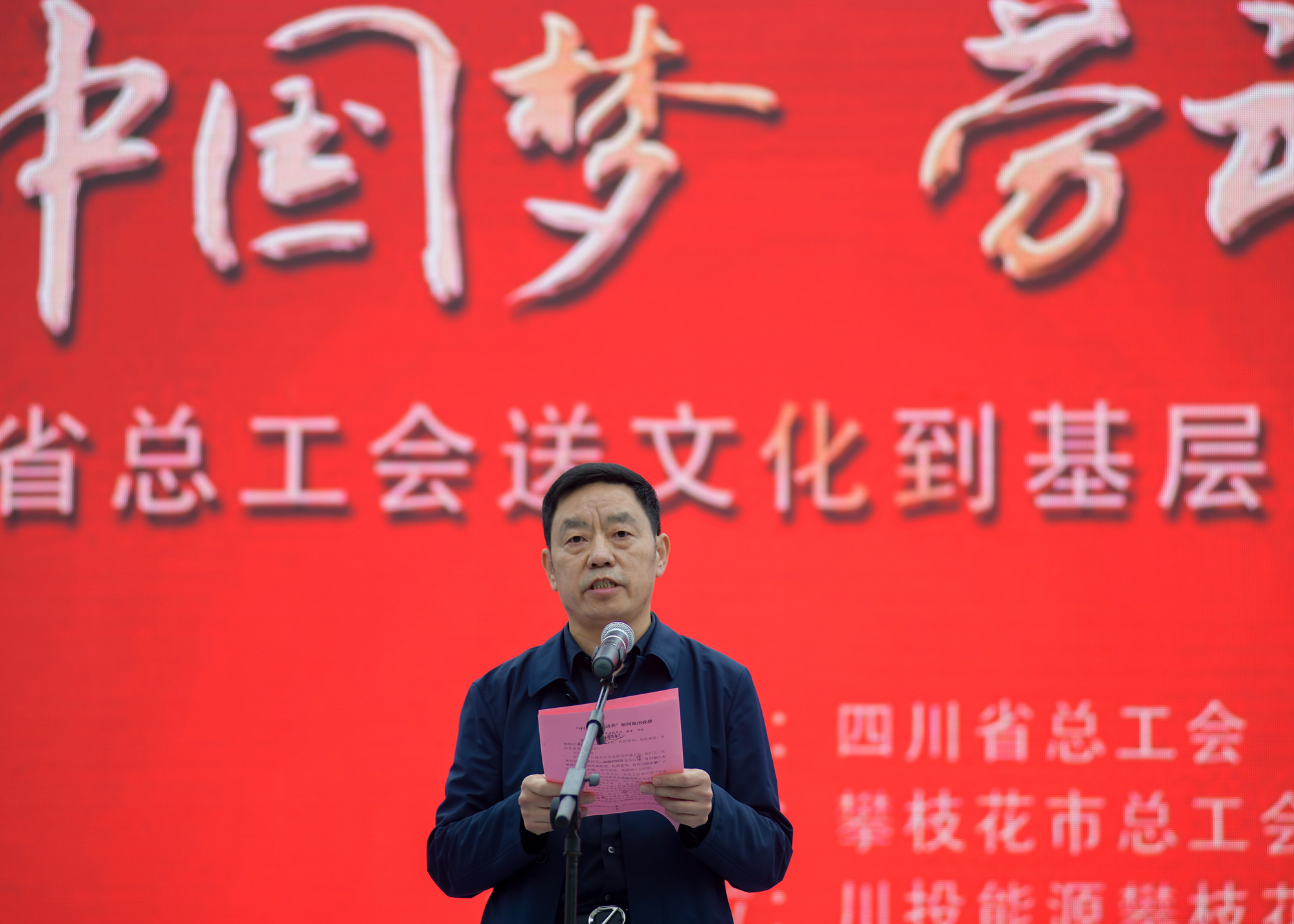 演出開始前,播放了川投能源宣傳片、攀枝花市東區(qū)宣傳片。鄧凱代表川投集團(tuán)致辭,對銀江水電站如火如荼的工程建設(shè)進(jìn)程表示欣慰。他指出,自銀江水電站建設(shè)以來,在各級政府和工會(huì)的關(guān)心支持下,銀江建設(shè)者秉承工匠精神,按照“開工不停工”的總體要求,逢山開路、遇水架橋、攻堅(jiān)克難、銳意進(jìn)取,取得了令人矚目的建設(shè)成果。川投集團(tuán)站在實(shí)現(xiàn)“兩個(gè)一百年”奮斗目標(biāo)的歷史交匯點(diǎn)上,正式展開了對標(biāo)世界一流的管理提升行動(dòng),努力打造具有國際影響力的一流國有資本投資集團(tuán),是貫徹落實(shí)黨的十九屆五中全會(huì)重要精神的最新部署,是開啟全面建設(shè)社會(huì)主義現(xiàn)代化國家新征程的時(shí)代行動(dòng),是凝心聚力勠力實(shí)現(xiàn)“銀江夢、川投夢、中國夢”的沖鋒號角!最后鄧凱代表川投集團(tuán)對各位領(lǐng)導(dǎo)、各位來賓和各位藝術(shù)家的到來表示熱烈的歡迎,對一直以來關(guān)心支持川投集團(tuán)改革發(fā)展和銀江水電站建設(shè)的各級政府、工會(huì)表示衷心的感謝!