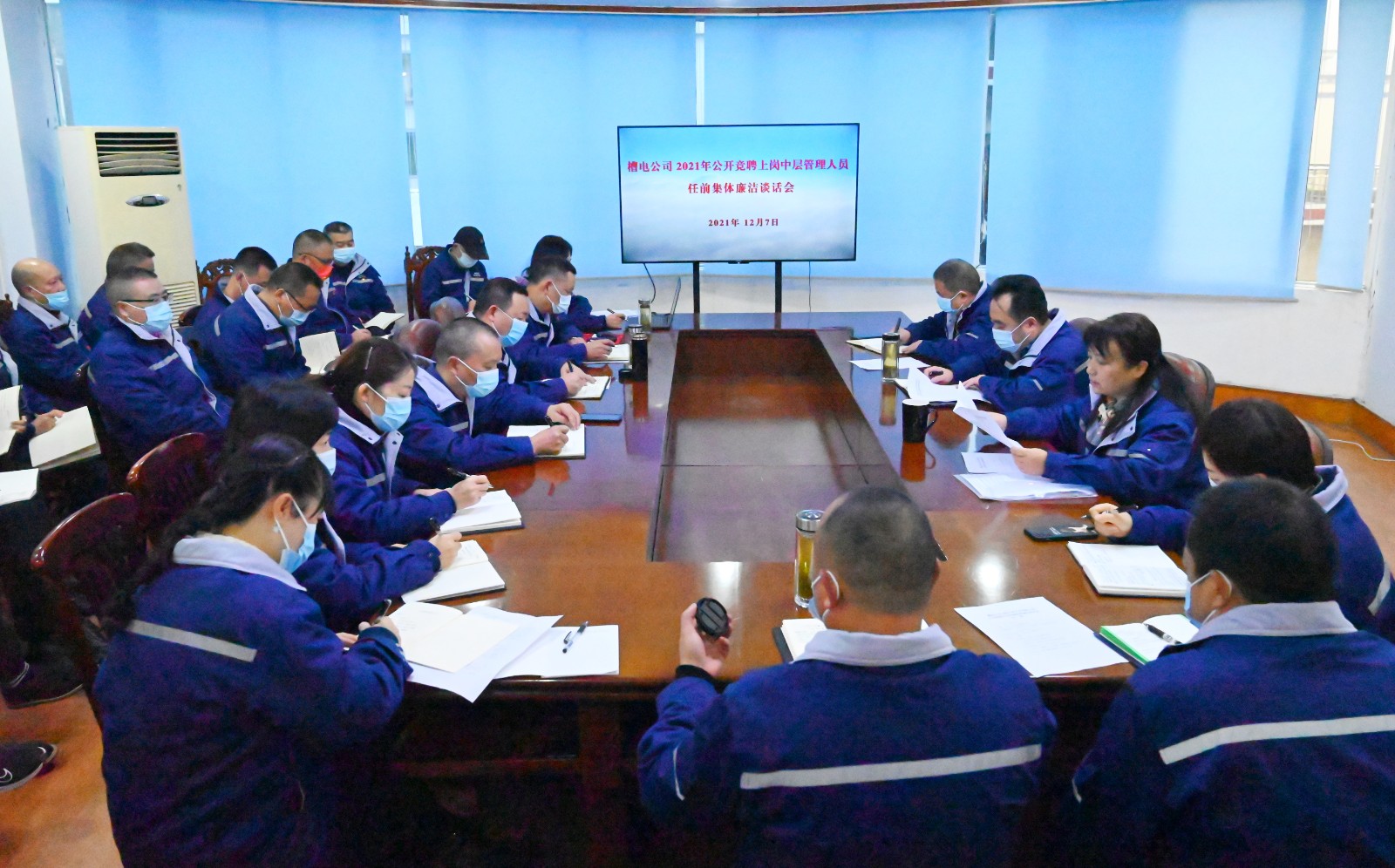 為了貫徹落實(shí)集團(tuán)公司關(guān)于進(jìn)一步深化“三項(xiàng)制度改革”精神,槽漁灘公司于2021年11月開(kāi)展了中層管理人員全員公開(kāi)競(jìng)聘工作。26名管理人員經(jīng)組織考察、競(jìng)聘答辯、群眾監(jiān)督三個(gè)環(huán)節(jié)成功競(jìng)聘。12月7日上午,按照全面從嚴(yán)治黨和黨風(fēng)廉政建設(shè)要求,增強(qiáng)中層管理人員廉潔從業(yè)意識(shí)和拒腐防變能力,公司紀(jì)委組織新競(jìng)聘上崗的中層管理人員進(jìn)行任前集體廉潔談話。川投電力黨委書(shū)記、董事長(zhǎng)兼槽漁灘公司黨委書(shū)記、董事長(zhǎng)楊濤,黨委委員、總經(jīng)理何光富,黨委委員、紀(jì)委書(shū)記謝愛(ài)東出席會(huì)議,并分別對(duì)參會(huì)人員進(jìn)行了廉潔談話。會(huì)議由紀(jì)委書(shū)記謝愛(ài)東主持。