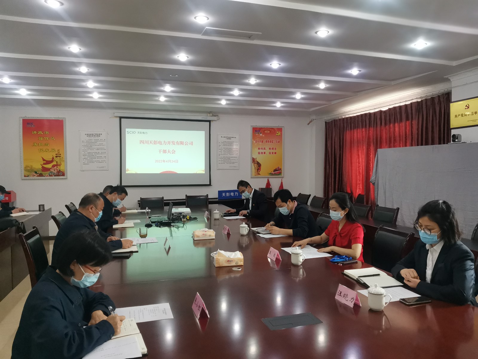 4月24日,天彭電力召開公司干部大會,川投能源黨委委員、紀委書記戴月洪、人力資源部經(jīng)理王歆、紀檢工作部副主任肖堯出席大會,天彭電力領導班子成員、中層以上干部參加會議,會議由王歆主持。
