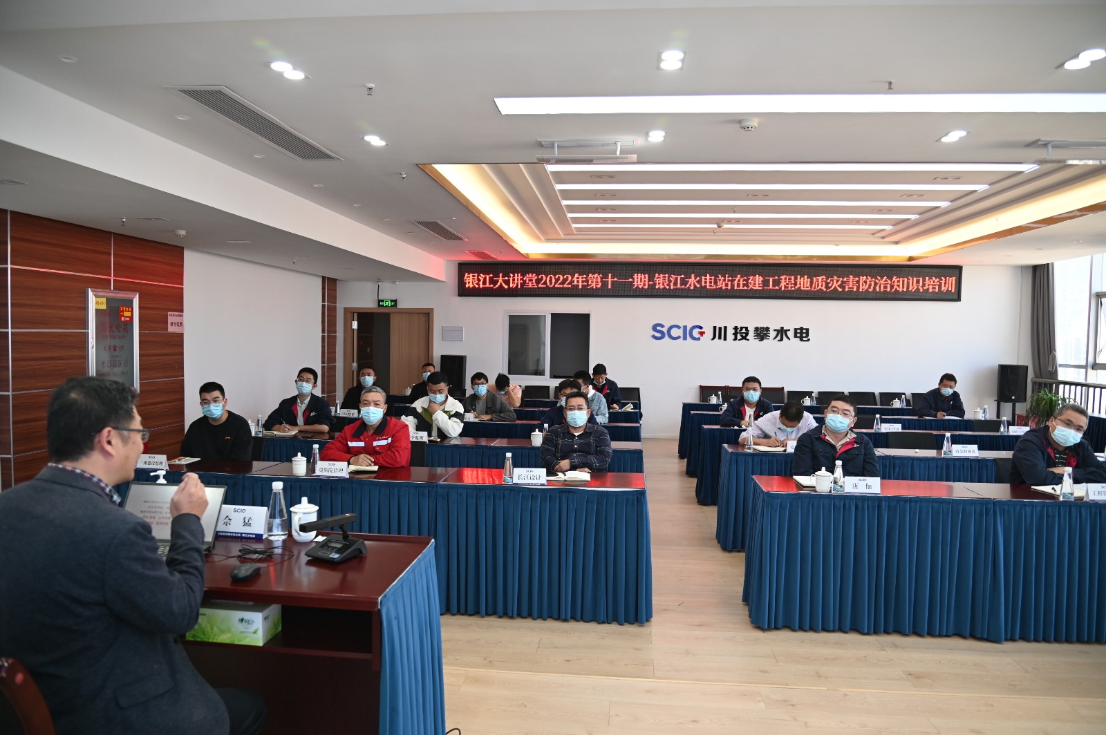 為提高地質(zhì)災(zāi)害防治能力,繃緊安全生產(chǎn)這根弦,2022年12月2日攀水電公司利用銀江大講堂平臺,組織各參建單位開展了在建工程地質(zhì)災(zāi)害防治知識培訓(xùn),邀請到攀枝花市國土空間生態(tài)修復(fù)與地質(zhì)災(zāi)害防治中心高級工程師佘猛進(jìn)行授課,攀水電公司副總經(jīng)理唐伽出席了培訓(xùn),公司各部門及各參建單位防汛值班人員代表共計(jì)30余人參加了培訓(xùn),培訓(xùn)由工程管理部經(jīng)理嚴(yán)瑞平主持。