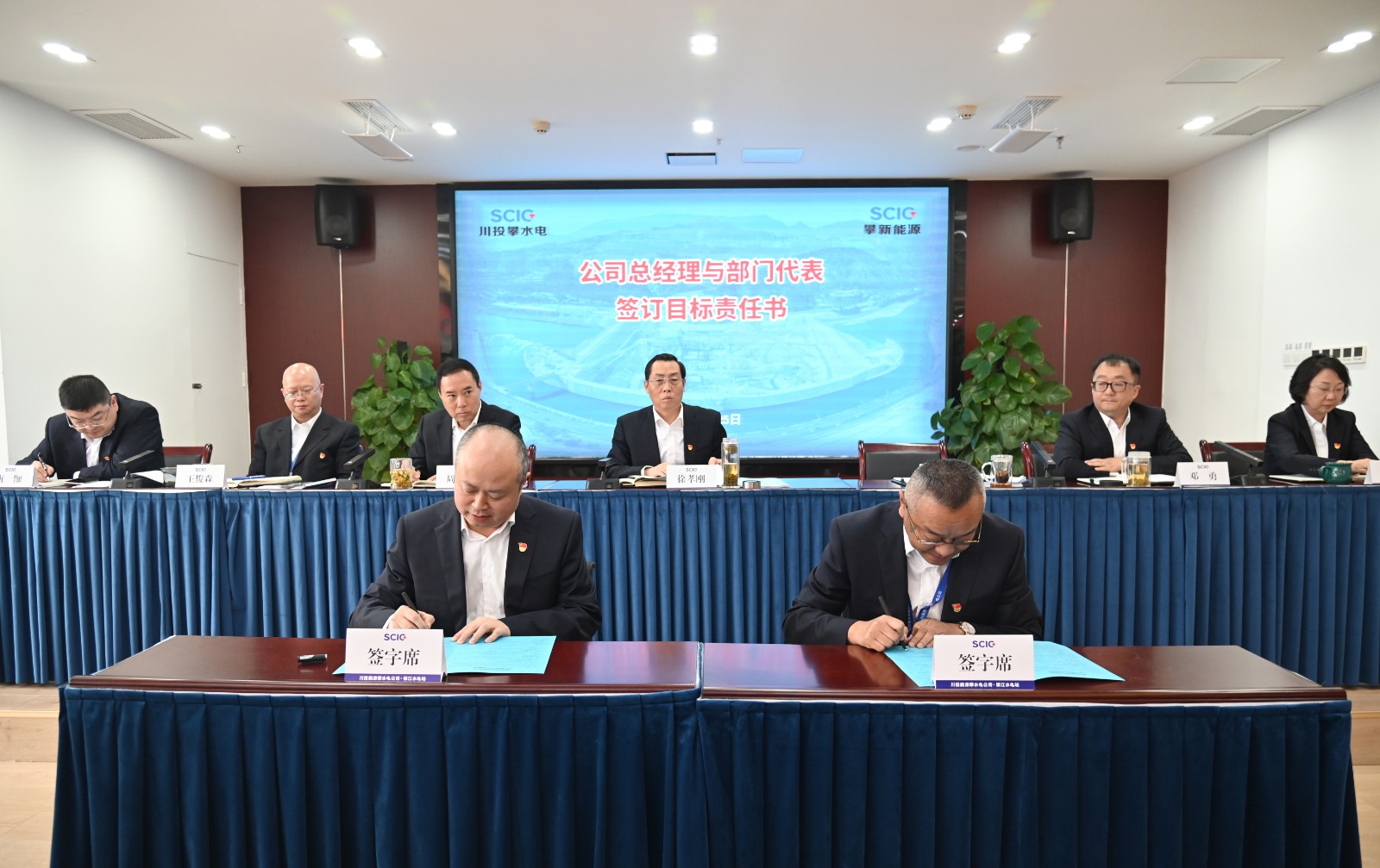 會(huì)議傳達(dá)學(xué)習(xí)了川投集團(tuán)、川投能源2023年工作會(huì)精神;攀水電公司總經(jīng)理吳巍嶼和攀新能源公司總經(jīng)理周軍分別作了兩公司2022年工作總結(jié)及2023年工作計(jì)劃的報(bào)告,全面總結(jié)了2022年各項(xiàng)目標(biāo)任務(wù)完成情況,分析了當(dāng)前面臨的形勢和問題,分解下達(dá)了2023年主要目標(biāo)任務(wù),提出了主要工作舉措。按照董事會(huì)授權(quán),吳巍嶼總經(jīng)理與攀水電公司部門代表簽訂了《2023年度部門目標(biāo)責(zé)任書》;部門及參建單位代表分別作了表態(tài)發(fā)言。