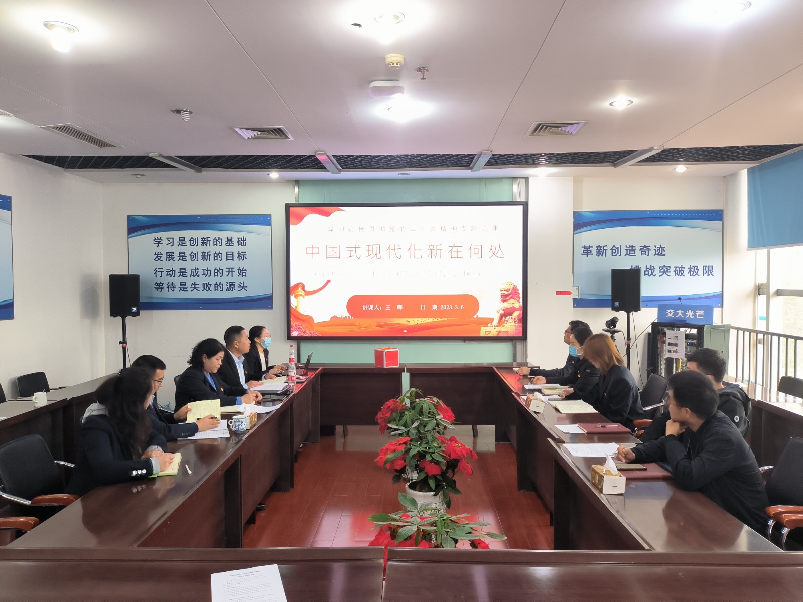 3月6日,為全面深入學習領會貫徹落實黨的二十大精神,打牢開好組織生活會的思想基礎,交大光芒第一黨支部召開黨員大會,集中學習習近平同志在學習貫徹黨的二十大精神研討班開班式上發(fā)表重要講話、中國共產黨第二十屆中央委員會第二次全體會議公報。第一支部書記、公司副總工程師兼研發(fā)中心副總經理王輝以《中國式現代化新在何處》為題進行專題黨課。