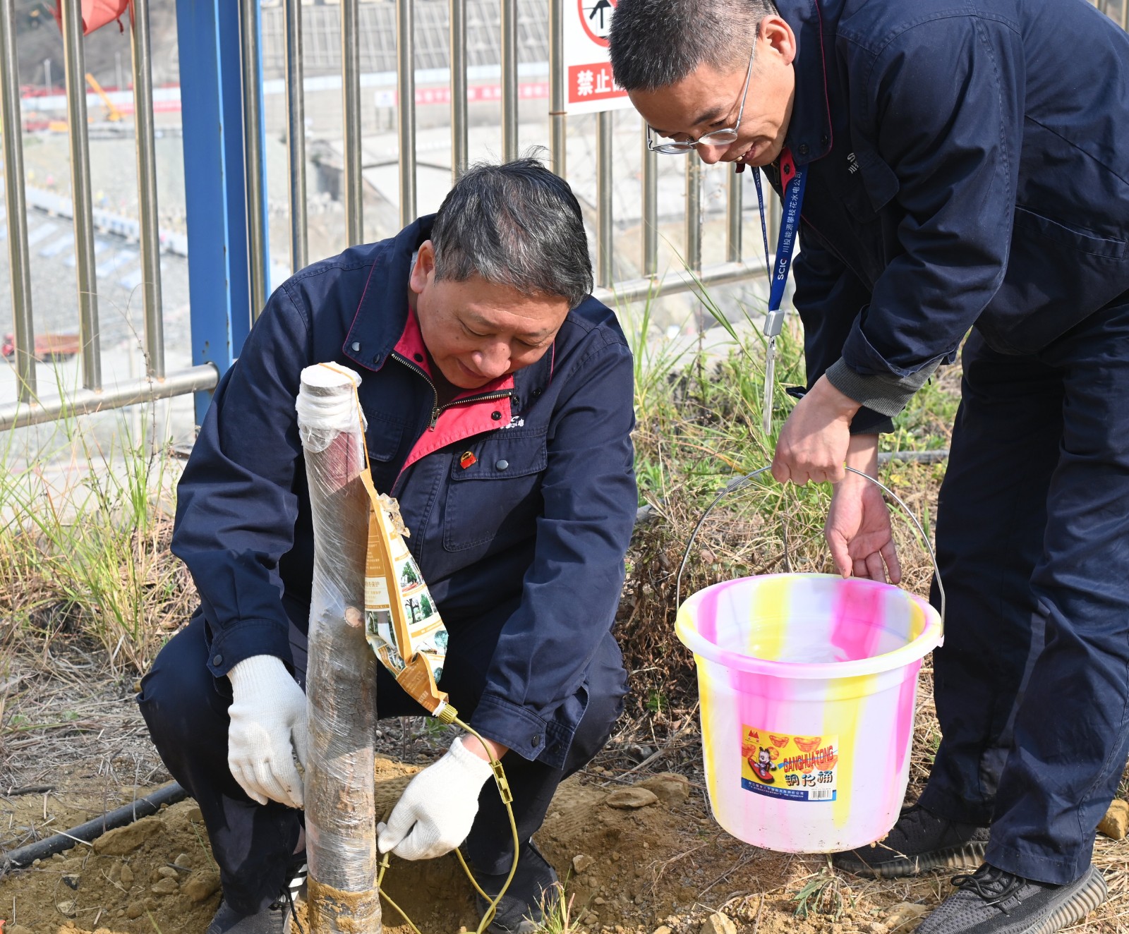 公司黨總支副書記、總經(jīng)理吳巍嶼致歡迎辭,感謝金河村黨委班子和農(nóng)業(yè)專家親臨銀江工地指導芒果種植,并指出種植芒果樹不僅可以創(chuàng)造經(jīng)濟價值,還能更好地發(fā)揮廣大黨員、志愿者的積極作用,揮灑激情與汗水,收獲果實和喜悅,點燃希望和夢想,共同為建設綠色、文明、美麗的新銀江而辛勤耕耘。金河村黨委書記馮正偉也談到,弘揚義務植樹、綠色環(huán)保的理念,是我們每個黨員同志的義務和職責,本次黨建共建植樹活動有助于綠化環(huán)境、凈化空氣,共同建設我們美麗和諧的家園。