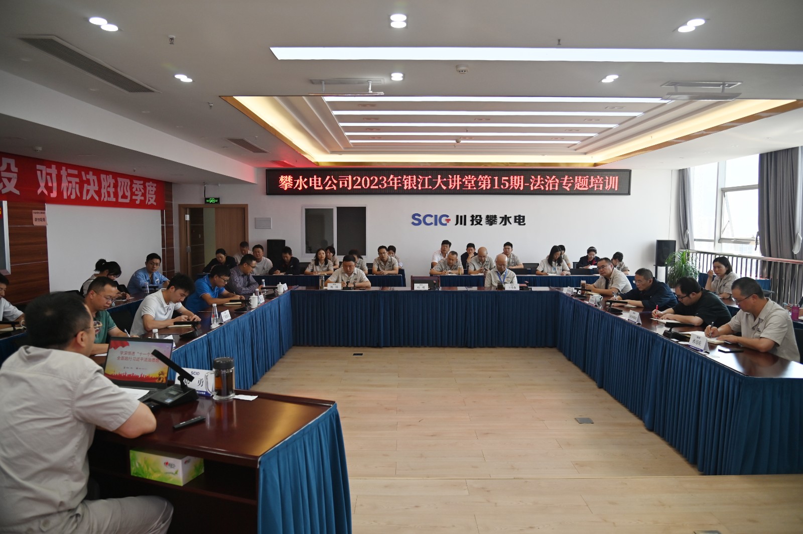 為深入學(xué)習(xí)宣貫黨的二十大精神,認(rèn)真貫徹落實(shí)習(xí)近平法治思想,積極落實(shí)省國資委、川投集團(tuán)、川投能源關(guān)于“送法進(jìn)企業(yè)”活動要求,進(jìn)一步提升企業(yè)依法治理和合規(guī)經(jīng)營能力,切實(shí)增強(qiáng)廣大干部職工法律意識和法治素養(yǎng),2023年10月31日,公司精心組織開展了第15期銀江大講堂——法治專題培訓(xùn),公司在攀領(lǐng)導(dǎo)、員工及參建單位人員共計(jì)40余人參加培訓(xùn)。