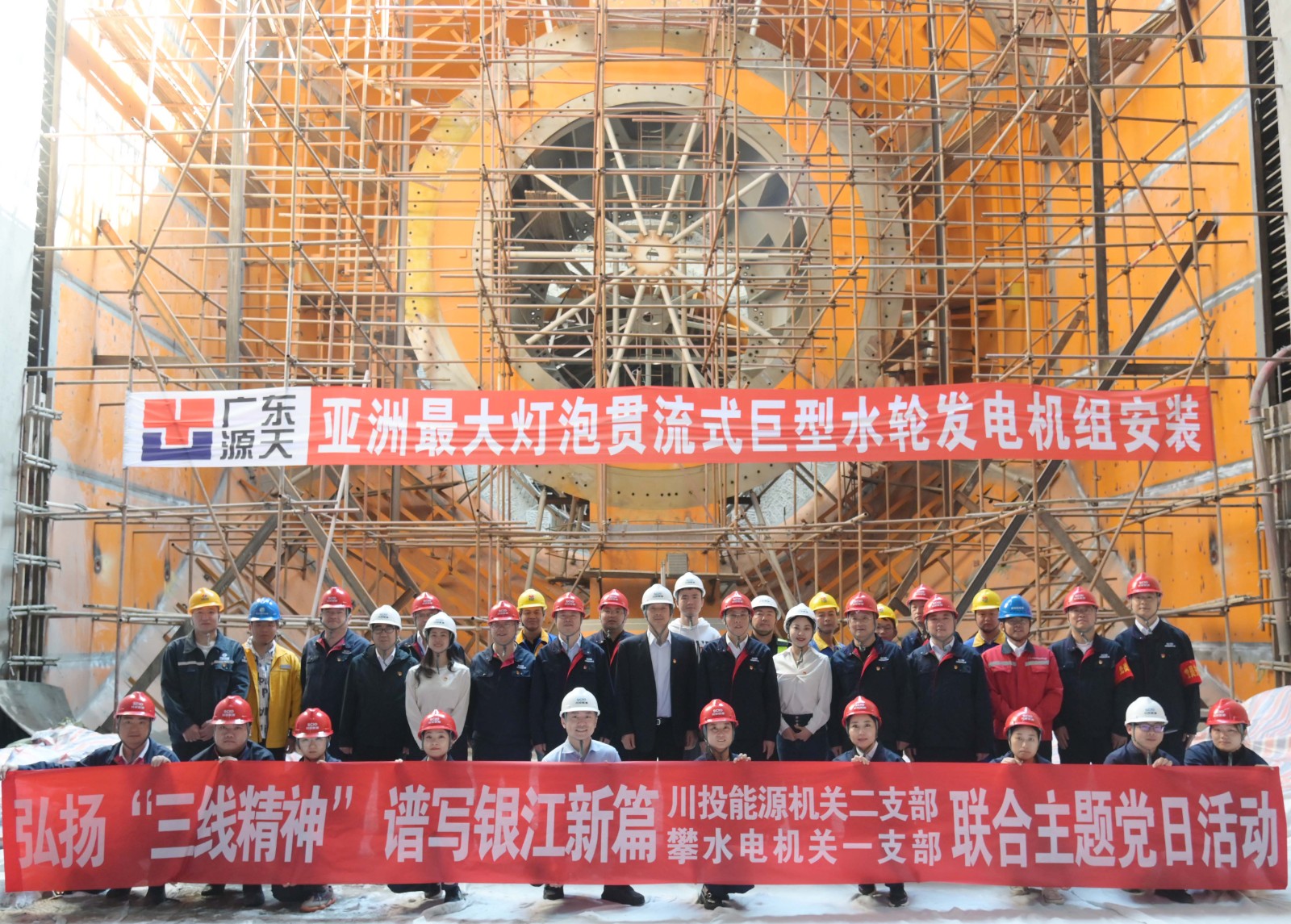 在銀江水電站亞洲最大燈泡貫流式巨型水輪發(fā)電機組安裝現(xiàn)場,川投能源機關(guān)二支部書記李睿講授了工地微黨課《承諾》,與大家一起重溫銀江水電站建設(shè)過程中的感人故事?;顒又?,徐孝剛用通俗易懂的語言,為現(xiàn)場同志介紹了銀江水電站的建設(shè)特點、施工情況和下一步工程建設(shè)計劃,并號召全體黨員和團員青年要圍繞“保一爭二”提前發(fā)電重要目標(biāo),團結(jié)一心、勇挑重?fù)?dān)、善作善成。