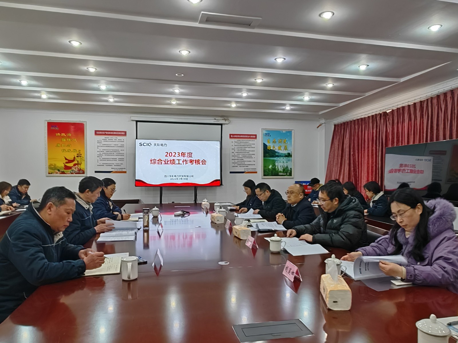 根據(jù)川投電力工作安排,2月28日,川投電力黨委副書記、總經(jīng)理、考核組組長(zhǎng)蔡承德率隊(duì)赴天彭電力開展2023年度綜合業(yè)績(jī)工作考核。川投電力考核組成員、天彭電力領(lǐng)導(dǎo)班子成員、全體中干及員工代表參加考核會(huì),會(huì)議由川投電力黨委委員、副總經(jīng)理王偉主持。