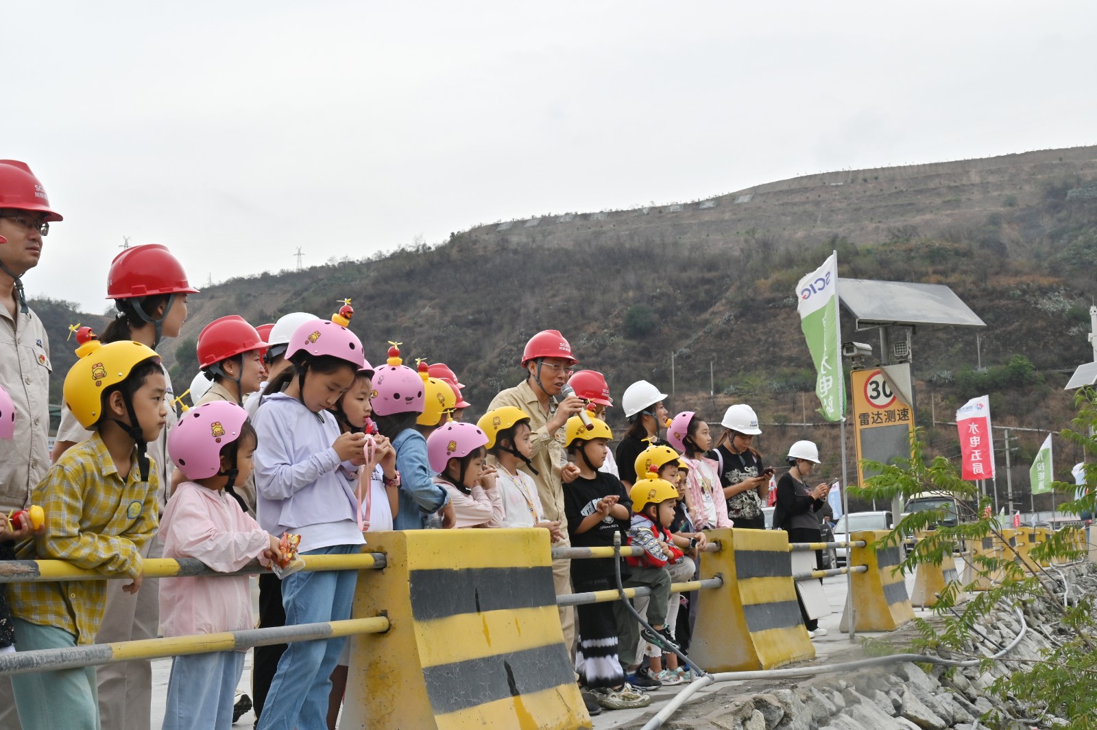 在“六一”國際兒童節(jié)之際,銀江水電站工地迎來了一群特殊的小嘉賓,為了切實關(guān)心關(guān)愛公司職工子女的健康成長,攀水電公司特別邀請職工子女到工地參觀,讓孩子們更好地了解父母的工作環(huán)境。攀水電公司黨總支書記、董事長徐孝剛,職工及子女、家屬代表共計40余人參加。