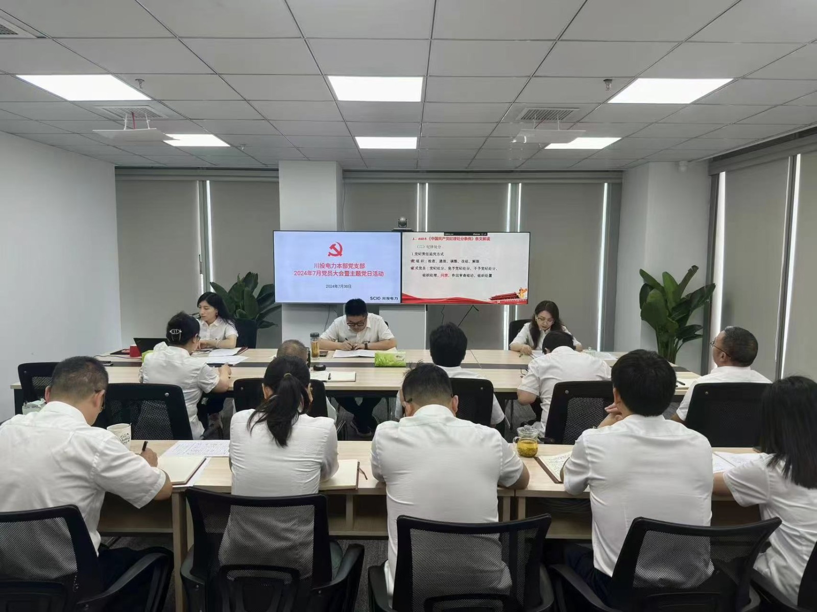 為貫徹落實(shí)習(xí)近平總書記關(guān)于全面加強(qiáng)黨的紀(jì)律建設(shè)的重要論述,增強(qiáng)全體黨員干部紀(jì)律意識、規(guī)矩意識,持續(xù)深化黨紀(jì)學(xué)習(xí)教育,推動省委十二屆五次全會精神落地落實(shí),7月30日,川投電力本部黨支部召開7月主題黨日活動。會議由支部書記李天宏主持,支部全體黨員、入黨積極分子參加會議。
