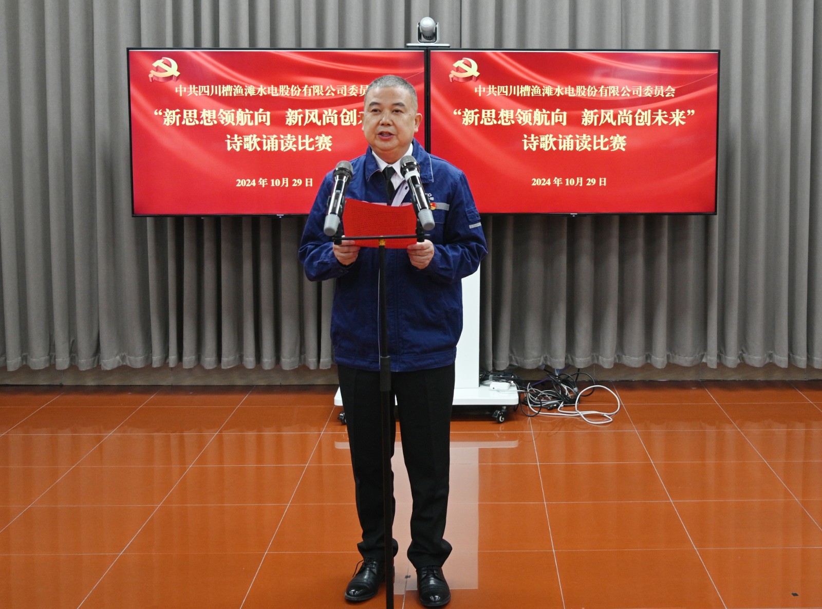 為深入貫徹黨的二十屆三中全會精神及省委十二屆六次全會精神,激發(fā)全體黨員職工愛黨愛國、愛崗敬業(yè)的熱情,10月29日上午,槽漁灘公司黨委舉辦“新思想領(lǐng)航向、新風(fēng)尚創(chuàng)未來”詩歌誦讀比賽。川投電力黨委副書記、工會主席楊鑫出席,槽漁灘公司黨委書記、董事長何光富致辭。