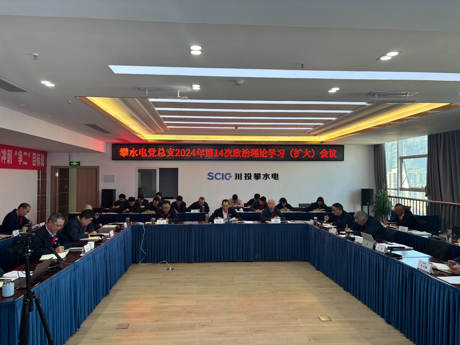 為深入貫徹落實(shí)習(xí)近平總書記近期重要講話精神,樹牢安全環(huán)保和廉潔從業(yè)精神,近日,攀水電黨總支在公司2620會(huì)議室召開了2024年第14次政治理論學(xué)習(xí)(擴(kuò)大)會(huì)議,學(xué)習(xí)第一議題、上級會(huì)議、文件、安全環(huán)保、廉政警示教育等相關(guān)內(nèi)容。川投能源副總經(jīng)理、攀水電公司黨總支書記、董事長徐孝剛主持會(huì)議,攀水電公司黨員干部、統(tǒng)戰(zhàn)對象、入黨積極分子共30余人參加學(xué)習(xí)。