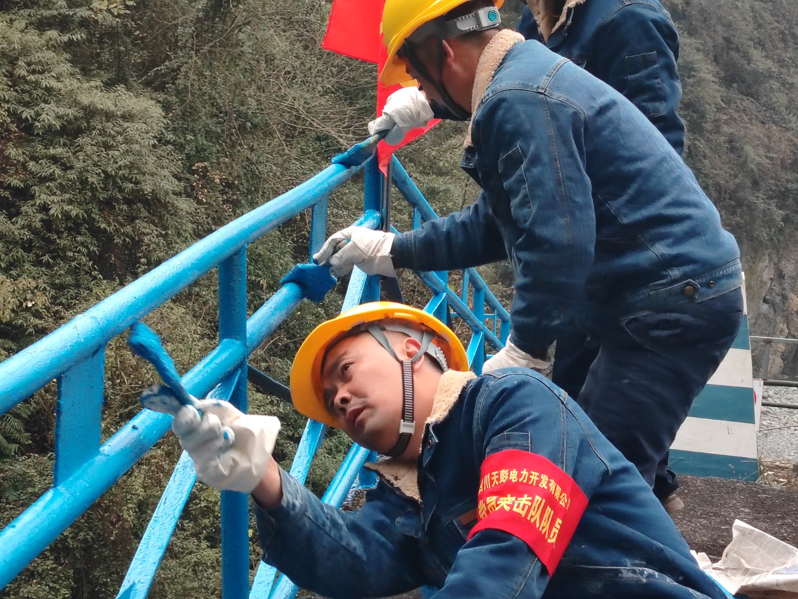 活動(dòng)開始前第三支部黨員進(jìn)行了充分的準(zhǔn)備和周密的分工,大家各司其職,迅速就位。刷漆過程中,有的負(fù)責(zé)初步清理護(hù)欄銹跡和污垢,為后續(xù)刷漆做好充分準(zhǔn)備;有的則手持油漆刷等工具,細(xì)致地為護(hù)欄和金屬結(jié)構(gòu)一遍遍涂上新的油漆。無論是經(jīng)驗(yàn)豐富的老員工,還是朝氣蓬勃的青年黨員,都干得熱火朝天。原本銹跡斑斑的近千米護(hù)欄和金屬結(jié)構(gòu)逐漸煥然一新,為鳳鳴湖水庫增添了一抹亮麗的色彩。