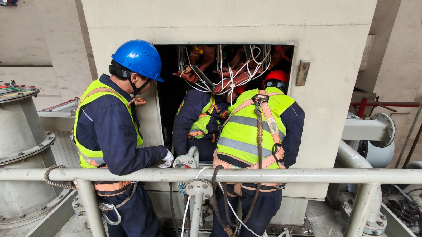 因上游電廠突發(fā)情況,導(dǎo)致本次停電時(shí)間延誤、有效作業(yè)時(shí)間縮短,本次檢修任務(wù)面臨嚴(yán)峻考驗(yàn)。3月13日,腳基坪電廠迅速組建了一支由6名技術(shù)骨干組成的黨員先鋒隊(duì)。在檢修工作中,充分發(fā)揮黨員的先鋒模范作用,以身作則,沖鋒在前,用實(shí)際行動(dòng)詮釋了黨員的責(zé)任與擔(dān)當(dāng)。主動(dòng)加班加點(diǎn),相互協(xié)作,密切配合,共同攻克了一個(gè)又一個(gè)技術(shù)難關(guān),確保了檢修工作的順利進(jìn)行。同時(shí),結(jié)合檢修現(xiàn)場實(shí)際情況,提出了一系列切實(shí)可行的優(yōu)化方案,有效提升了檢修效率和質(zhì)量。黨員先鋒隊(duì)隊(duì)員們精神抖擻,即便面對海量操作任務(wù),也絲毫不減嚴(yán)謹(jǐn)態(tài)度,共完成2項(xiàng)檢修項(xiàng)目、3項(xiàng)技術(shù)改造、全廠電氣設(shè)備預(yù)防性試驗(yàn)。