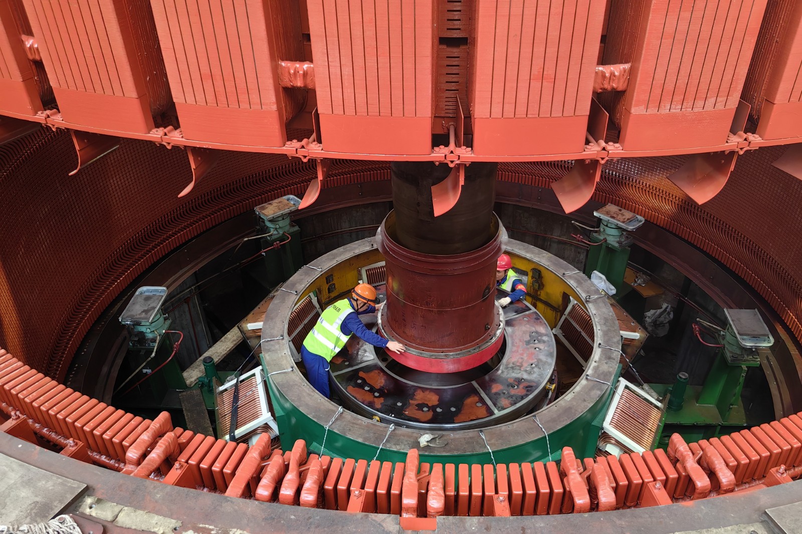 由于轉(zhuǎn)子與定子之間的間隙只有12毫米,要把這兩個(gè)“大家伙”精準(zhǔn)送回機(jī)坑指定位置并安裝好,難度系數(shù)非常高。川投電力高度重視,上下聯(lián)動(dòng),周密部署,全鏈條壓實(shí)安全生產(chǎn)責(zé)任,確保轉(zhuǎn)子回裝工作萬無一失。