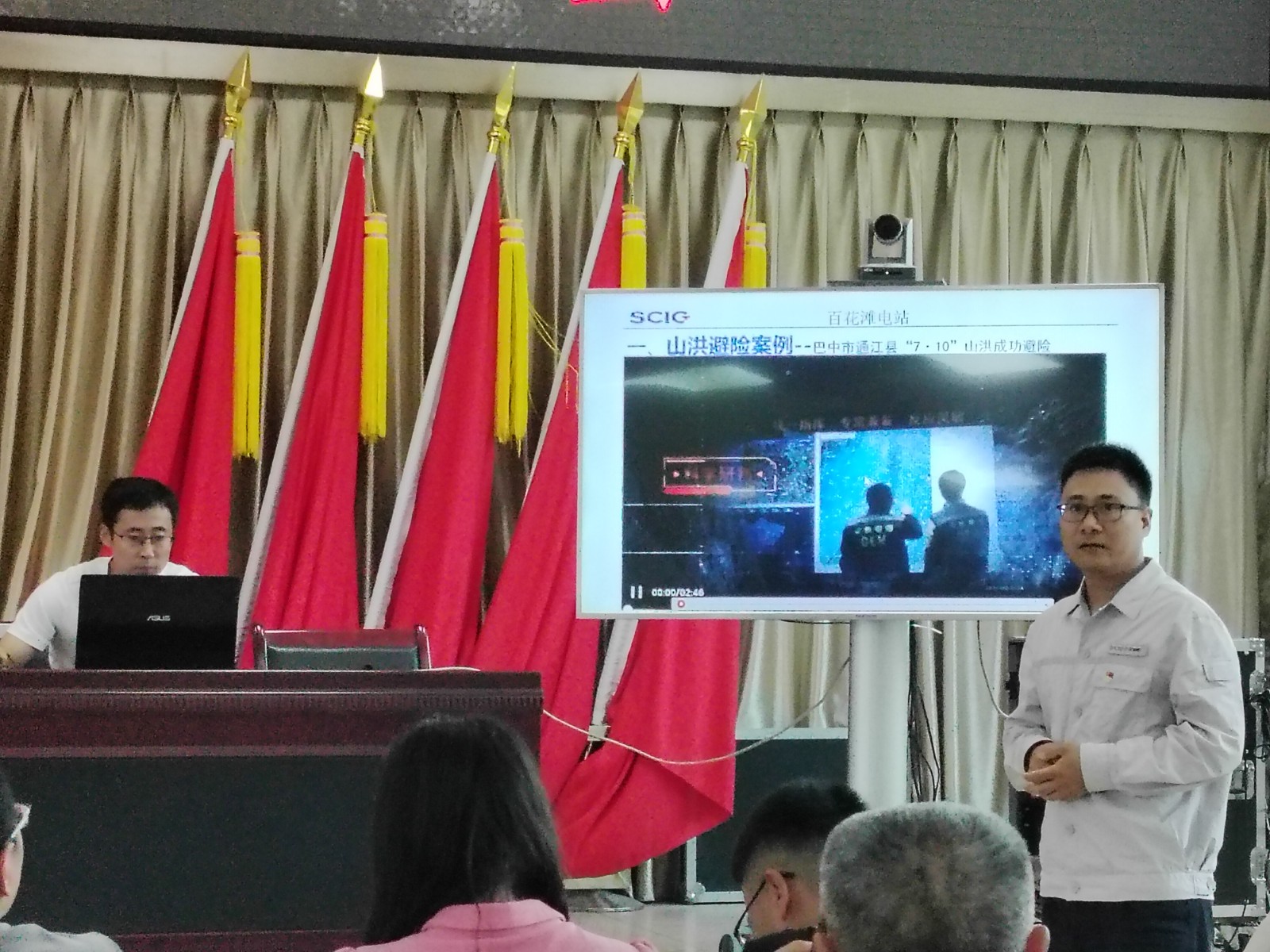 培訓活動在中保鎮(zhèn)政府會議室舉行,此次活動吸引了中保鎮(zhèn)政府工作人員、應(yīng)急救援隊員、村社區(qū)干部及群眾代表等共計130余人參與。來自百花灘電廠黨支部的黨員吉超擔任此次培訓的主講人。吉超同志憑借豐富的專業(yè)知識和實踐經(jīng)驗,圍繞山洪避險案例、防汛基本知識、防災(zāi)減災(zāi)宣傳、災(zāi)害性天氣安全提示、百花灘電廠泄洪預(yù)警機制等五個方面,進行了深入淺出的講解。通過此次培訓,中保鎮(zhèn)各級部門和社會各界人士的防災(zāi)減災(zāi)意識得到了顯著增強,對防汛等災(zāi)害防范工作有了更深入的認識和理解。同時,進一步強化了百花灘電廠與中保鎮(zhèn)政府的企地合作關(guān)系,為今后共同應(yīng)對各類災(zāi)害風險、保障人民群眾生命財產(chǎn)安全奠定了堅實基礎(chǔ)。