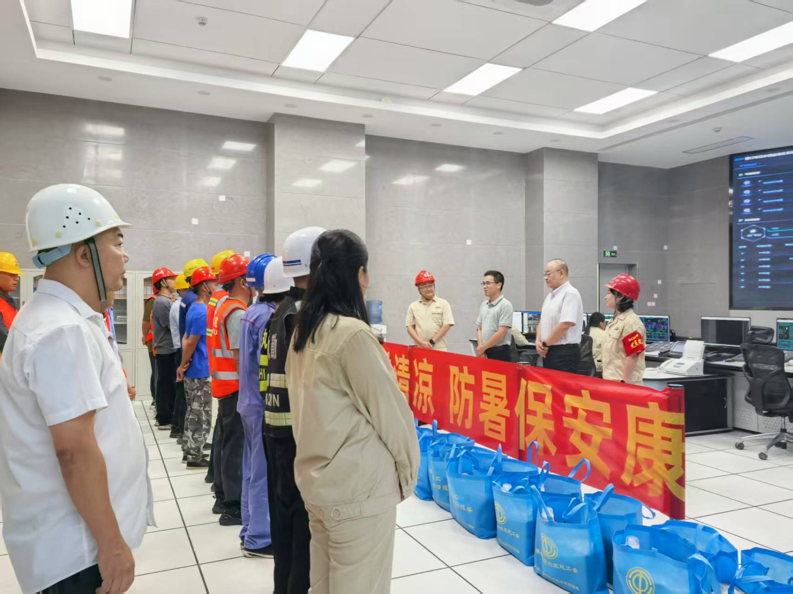 張平一行在現(xiàn)場了解了銀江水電站工程建設(shè)和安全生產(chǎn)情況,向一線人員送上了洗發(fā)露、沐浴露、洗衣液等清涼物資300余份?!肮蛠淼牟粌H是清涼,更是暖心!”大家紛紛表示,雖然天氣炎熱,但感受到了“娘家人”的貼心關(guān)懷,一定會克服高溫困難,時(shí)刻牢記“安全第一、生命至上”理念,以更加飽滿的熱情投入工作中。