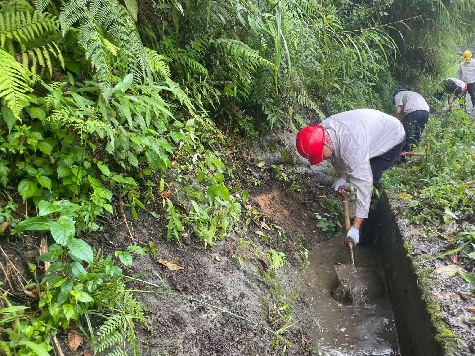 在暴雨預警拉響的第一時間,這支黨員先鋒隊就踏上了巡查征程。當發(fā)現(xiàn)排水溝淤積隱患時,副廠長、老黨員張坤祥二話不說,就跳進了滿是淤泥的排水溝進行清淤,他說:“淤泥增加1厘米,防汛壓力就重1分!”他的話語樸實無華,卻道出了一名共產(chǎn)黨員的責任與擔當。暴雨如注時,值守人員頂著傾盆大雨沖進廠房,在電閃雷鳴中對關鍵設備進行雨中特巡,雨水順著安全帽檐流進衣領,浸透了工作服,卻澆不滅他們守護機組安全的堅定信念。他們用沾滿淤泥的雨靴和浸透雨水的工裝,在防汛一線筑起了一道堅不可摧的“紅色堤壩”。截至目前,腳基坪電廠累計開展12次雨前、雨中、雨后特巡,清理淤積點13次。