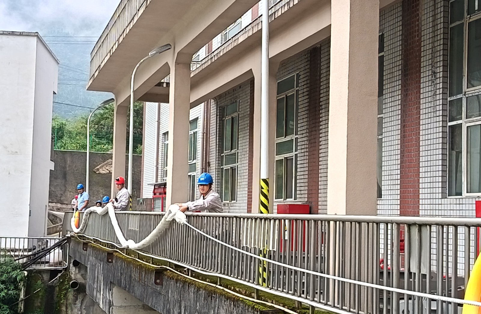 本次演練背景設(shè)定為電站大壩2#泄洪閘左側(cè)齒輪箱突發(fā)漏油,約50升齒輪油濺落至庫區(qū)水面并擴散,值班人員發(fā)現(xiàn)險情后立即啟動應(yīng)急響應(yīng)。中控室迅速協(xié)調(diào)上下游鍋浪蹺、匯溪電廠調(diào)整出力流量并協(xié)助布設(shè)攔油設(shè)施;運行組與應(yīng)急搶險組攜帶吸油氈、攔油索等器材趕赴現(xiàn)場,對漏油點進行封堵,同時在閘門前和水面關(guān)鍵區(qū)域鋪設(shè)攔油繩,防止污染擴散;后勤保障組全程待命,確保物資供應(yīng)和人員安全。經(jīng)過30分鐘緊張有序的處置,油污被徹底清理,庫區(qū)水質(zhì)未受影響,演練圓滿完成。