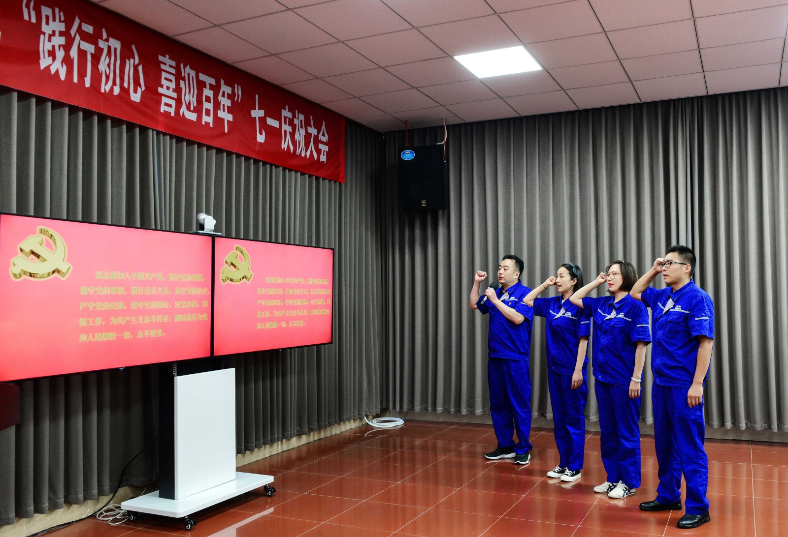慶祝大會在雄壯的國歌聲中正式開始。大會首先由公司黨委書記、董事長楊濤帶領(lǐng)三名新黨員在鮮紅的黨旗下進(jìn)行莊嚴(yán)的入黨宣誓,參會的全體黨員也和新黨員一起重溫了入黨誓詞。時刻提醒我們要始終保持共產(chǎn)黨員不忘初心、牢記使命的優(yōu)秀品質(zhì)。