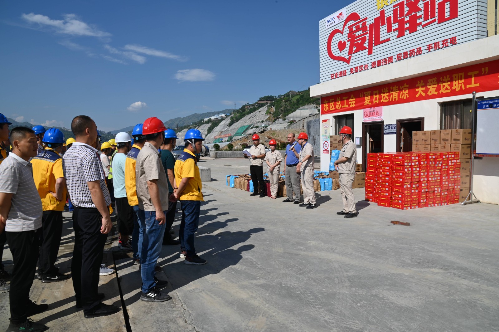7月以來(lái),攀枝花氣溫持續(xù)升高,為了保證一線職工在高溫環(huán)境下安全、清涼工作,近日攀枝花市東區(qū)總工會(huì)黨組書記、常務(wù)副主席劉貴平一行來(lái)到川投能源銀江水電站施工現(xiàn)場(chǎng)愛(ài)心驛站,為一線建設(shè)者們送來(lái)了300余份清涼解暑飲品和防暑降溫用品,慰問(wèn)奮戰(zhàn)在高溫一線的作業(yè)人員和管理人員。
