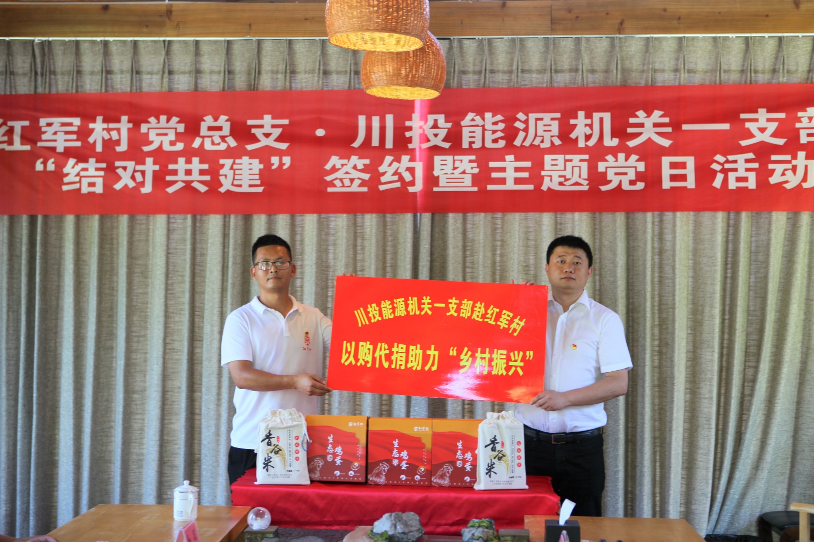 活動現(xiàn)場,雙方簽訂《企地黨支部結(jié)對共建協(xié)議書》,共同聆聽紅色微黨課,重溫入黨誓詞,重溫紅色記憶、汲取奮進(jìn)力量。川投能源機(jī)關(guān)第一黨支部向紅軍村黨總支贈送了精選黨建類書籍并開展“以購代捐”活動,以消費(fèi)幫扶助力鄉(xiāng)村振興。