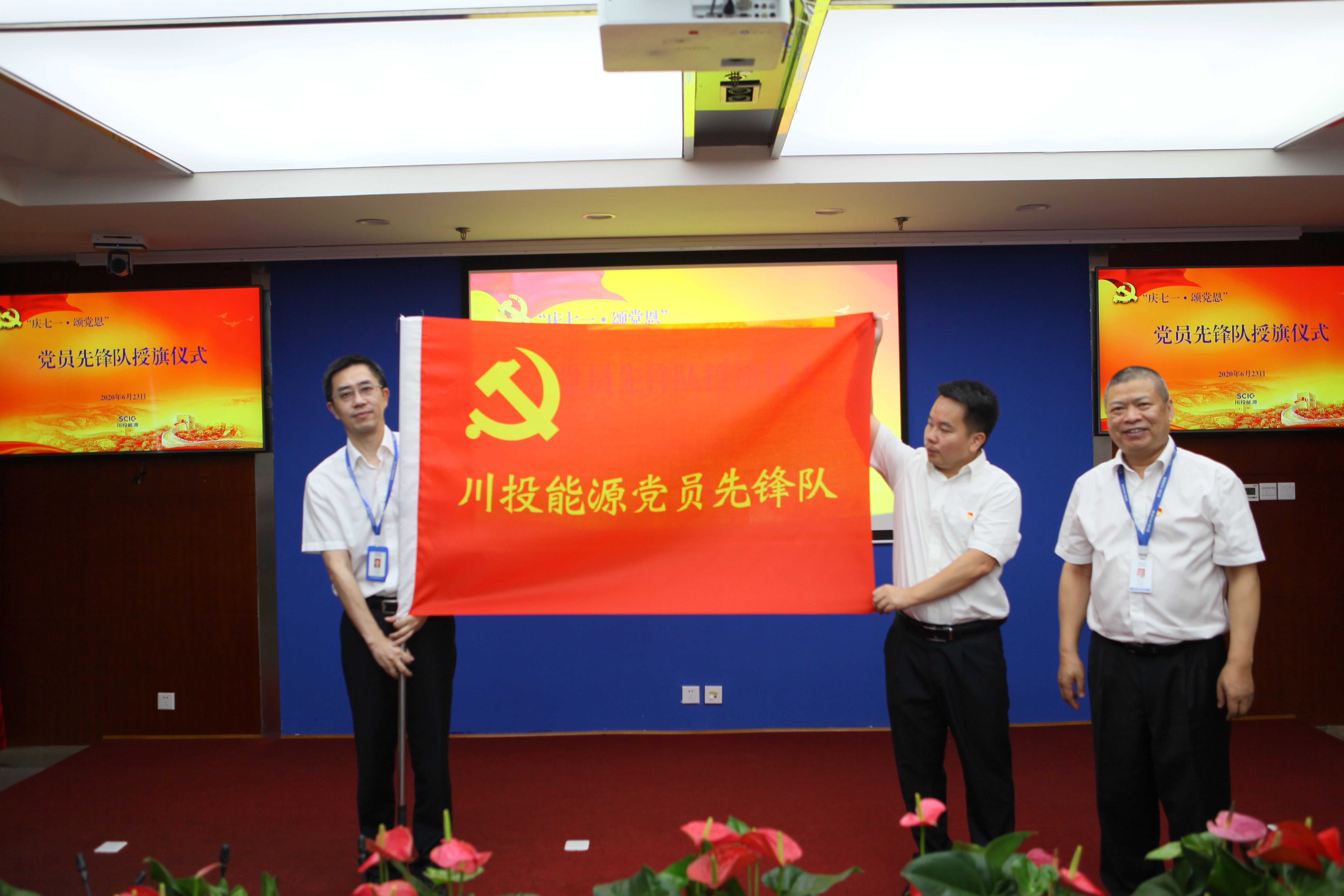 值此川投能源“紅色引擎藍籌先鋒”(簡稱“五個先鋒”)黨建品牌創(chuàng)建工作引向深入之際,6月23日,川投能源黨委采用現(xiàn)場和視頻會議相結(jié)合的方式,以黨員承諾踐諾、黨員先鋒隊授旗、發(fā)布公司黨建品牌標(biāo)識以及公司黨委書記講黨課等內(nèi)容為載體,組織全體黨員、入黨積極份子、新黨員代表隆重召開紀念建黨九十九周年大會,為中國共產(chǎn)黨第99個生日獻上賀禮。公司黨委副書記、工會主席楊超龍主持會議。