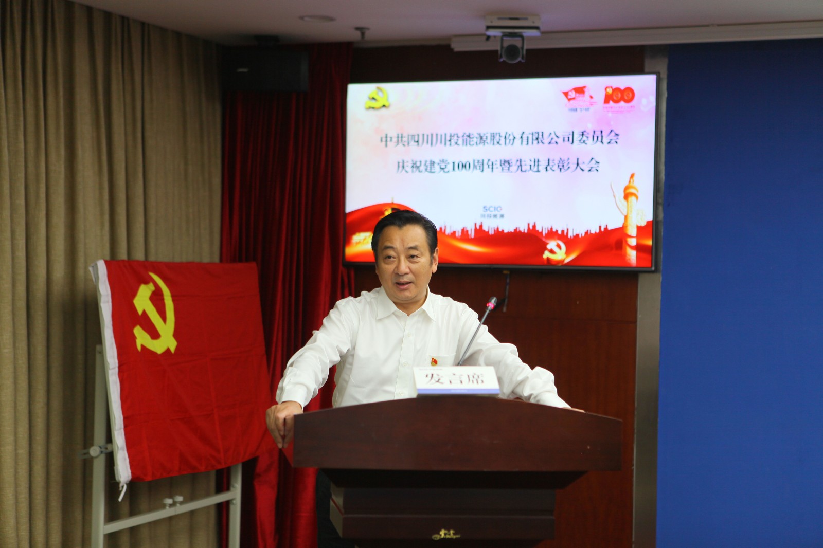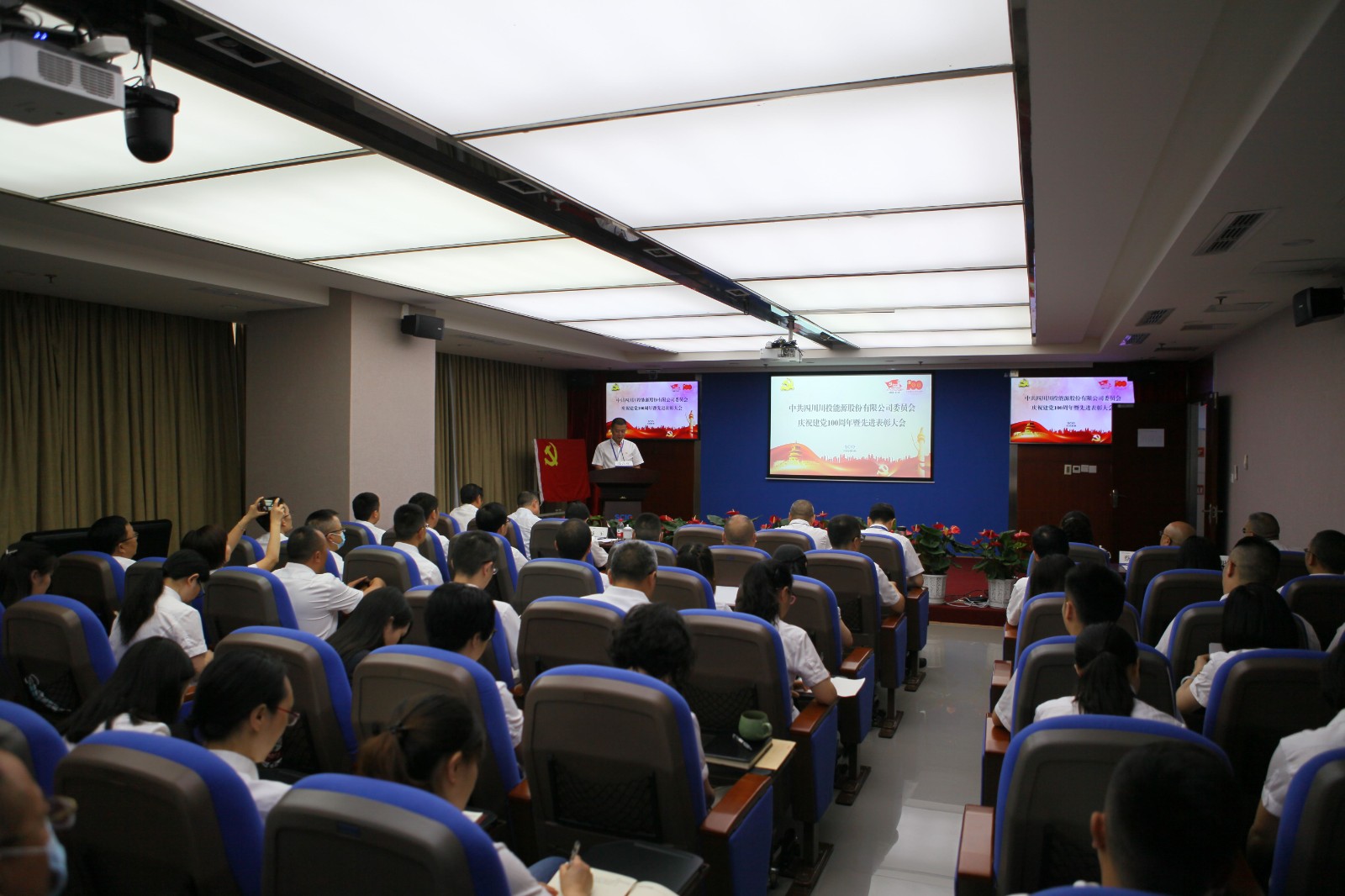 6月28日上午,川投能源黨委召開“奮進新征程 永遠跟黨走”慶祝建黨100周年暨先進表彰大會,以一系列簡樸而莊重的儀式,砥礪川投能源人的初心使命,激越起賡續(xù)發(fā)展的壯懷豪情。會議由黨委副書記、工會主席楊超龍主持,以視頻方式連線各單位分會場,共計200余名黨員職工參會。