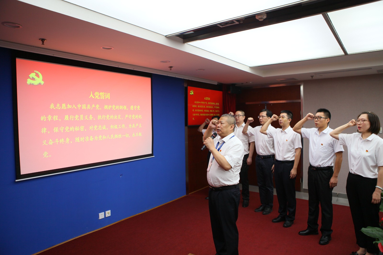 一段誓詞許下莊嚴承諾。大會在激昂高亢的國歌聲中拉開帷幕。隨后,公司黨委書記、副董事長、總經(jīng)理楊洪帶領(lǐng)新老黨員,鄭重地舉起右手,面對黨旗莊嚴宣誓,在主會場內(nèi)、在彭州龍門山下、在洪雅青衣江畔、在銀江攀西高原之上,響徹起共產(chǎn)黨人的錚錚誓言。