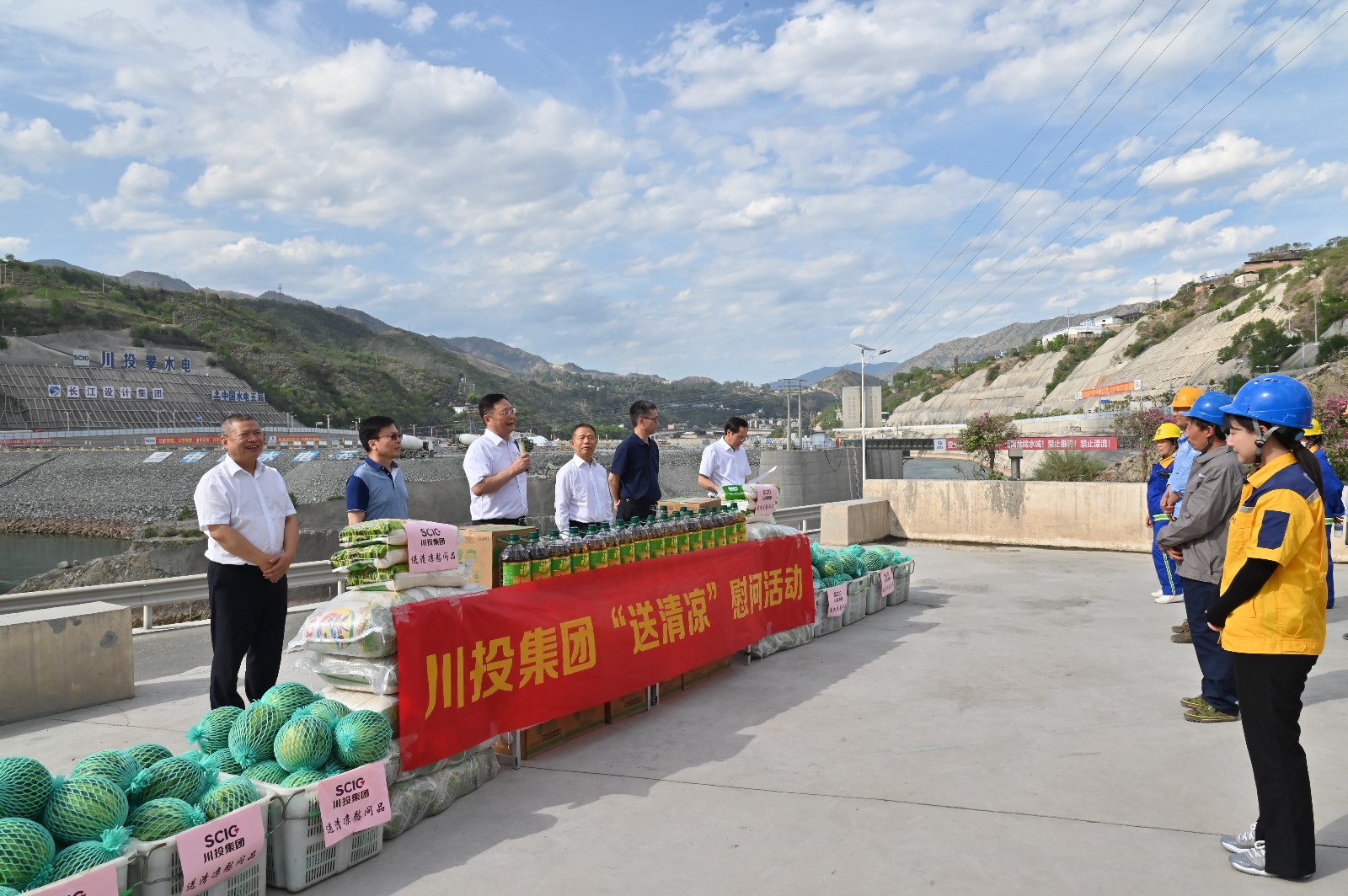 督導(dǎo)檢查組深入康家溝渣場、大壩基坑施工現(xiàn)場,重點(diǎn)檢查了攀水電公司“迎大運(yùn)?保安全”集中整治、重大事故隱患專項(xiàng)排查整治、安全生產(chǎn)責(zé)任落實(shí)以及風(fēng)險(xiǎn)辨識(shí)管控情況,并代表集團(tuán)公司慰問了攀水電公司及電站參建單位一線員工,為大家送上防暑降溫物資。