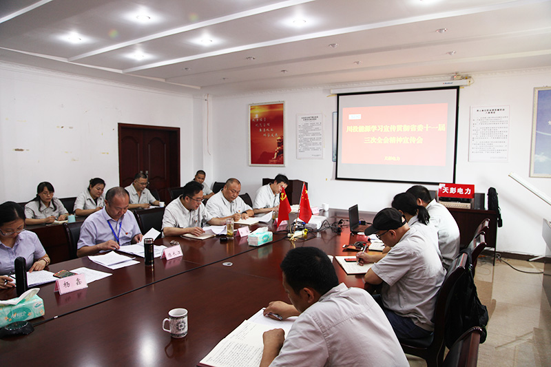 為推動省委十一屆三次全會精神宣貫活動深入開展,確保省委決策部署不折不扣落到實處, 8月8日,按照川投能源黨委的統(tǒng)一部署,黨委副書記、工會主席陳長江率黨群部副主任楊鑫一行赴天彭電力宣講省委十一屆三次全會精神,為天彭電力黨員干部和員工上了一堂生動的黨課。會議由天彭電力黨總支書記、總經(jīng)理楊濤主持,天彭電力全體干部、黨員和員工代表共計28人參加了宣講會。