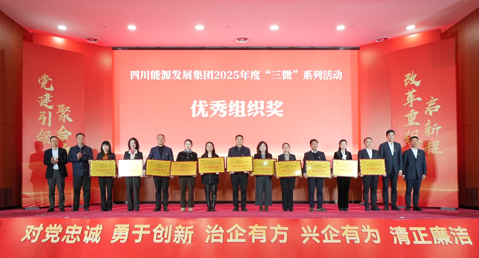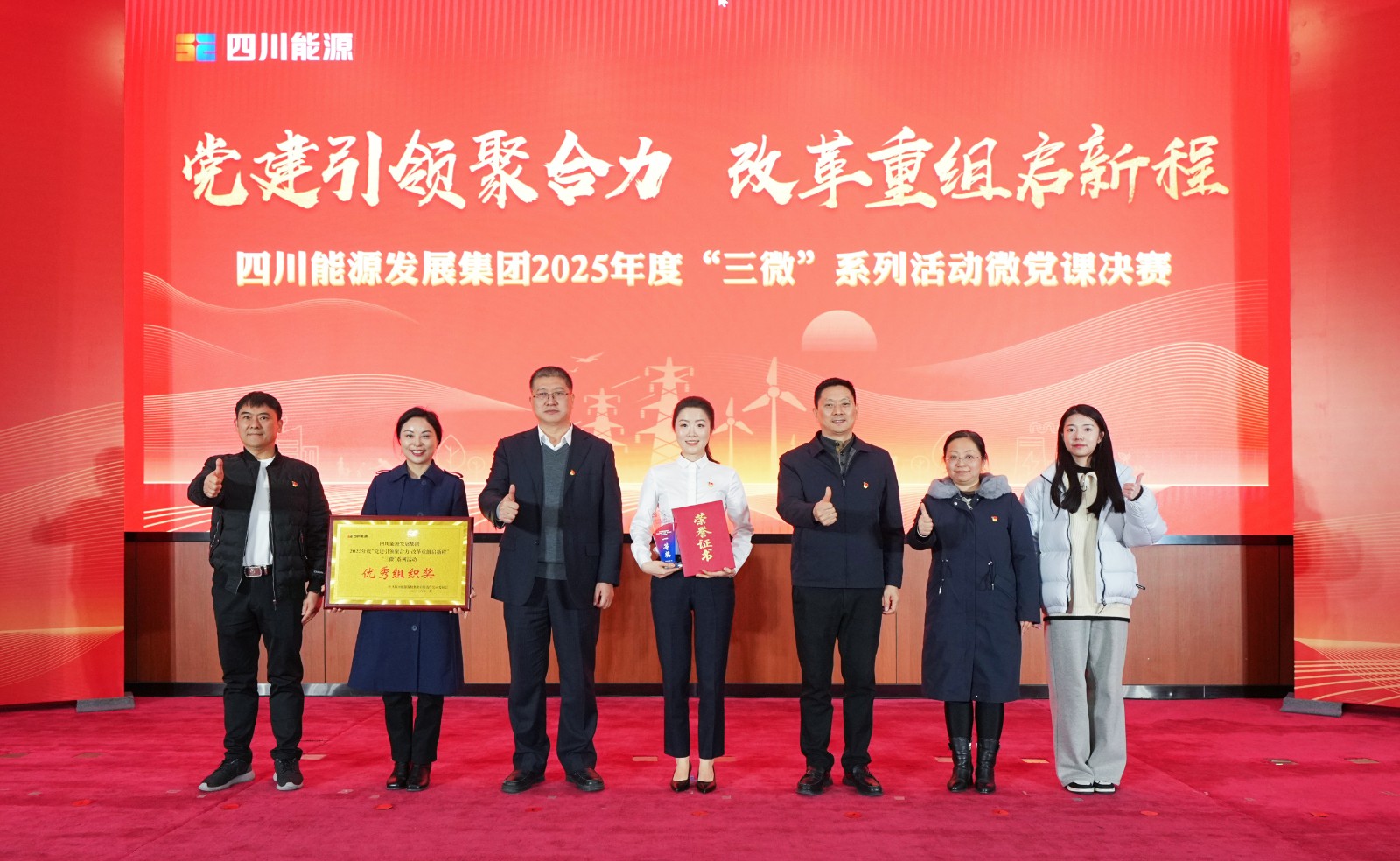 1月22日,四川能源發(fā)展集團(tuán)“黨建引領(lǐng)聚合力?改革重組啟新程”2025年度“三微”系列活動(dòng)微黨課決賽,在集團(tuán)總部圓滿落幕。川投能源基層理論宣講“睿聲工作室”骨干成員,川投電力公司黨群工作部趙夢(mèng)婷講授的微黨課《追光之路》,憑借深厚的情感、生動(dòng)的敘事和鮮明的主題,以全場(chǎng)最高分?jǐn)孬@一等獎(jiǎng)。此外,川投能源還包攬了本次微黨課決賽的優(yōu)秀組織獎(jiǎng)。集團(tuán)公司黨委副書(shū)記、副董事長(zhǎng)、總經(jīng)理鄧超為獲得一等獎(jiǎng)的主講人頒獎(jiǎng),川投能源黨委書(shū)記、董事長(zhǎng)劉勝金,黨委副書(shū)記、職工董事、工會(huì)主席冉蘭平現(xiàn)場(chǎng)觀看微黨課決賽。