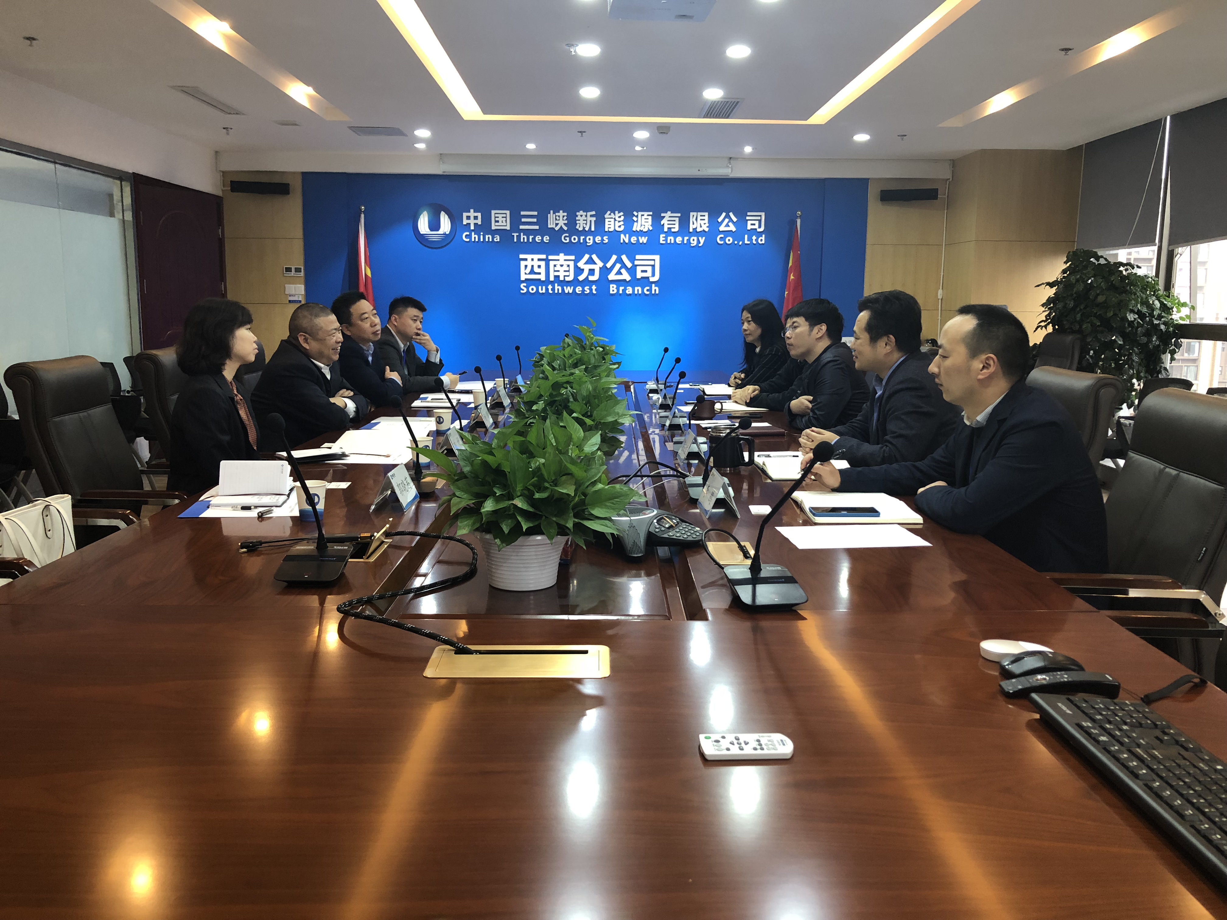 三峽新能源西南分公司總經(jīng)理喻洋對(duì)我方一行的到訪表示歡迎,并介紹了公司基本情況和未來(lái)發(fā)展方向。喻洋指出,三峽新能源西南分公司自2013年成立以來(lái),積極布局西南地區(qū)新能源發(fā)展,現(xiàn)已在藏、川、渝等地?fù)碛?0余萬(wàn)裝機(jī)規(guī)模。當(dāng)前,基于四川西部地區(qū)具有優(yōu)質(zhì)的風(fēng)、光等自然條件,“三州一市”光伏基地規(guī)劃建設(shè)也正在有序推進(jìn)。鑒于川投能源與三峽新能源有過(guò)很好的合作,希望以此為紐帶,雙方能夠進(jìn)一步尋找新能源領(lǐng)域合作契機(jī),實(shí)現(xiàn)共贏。