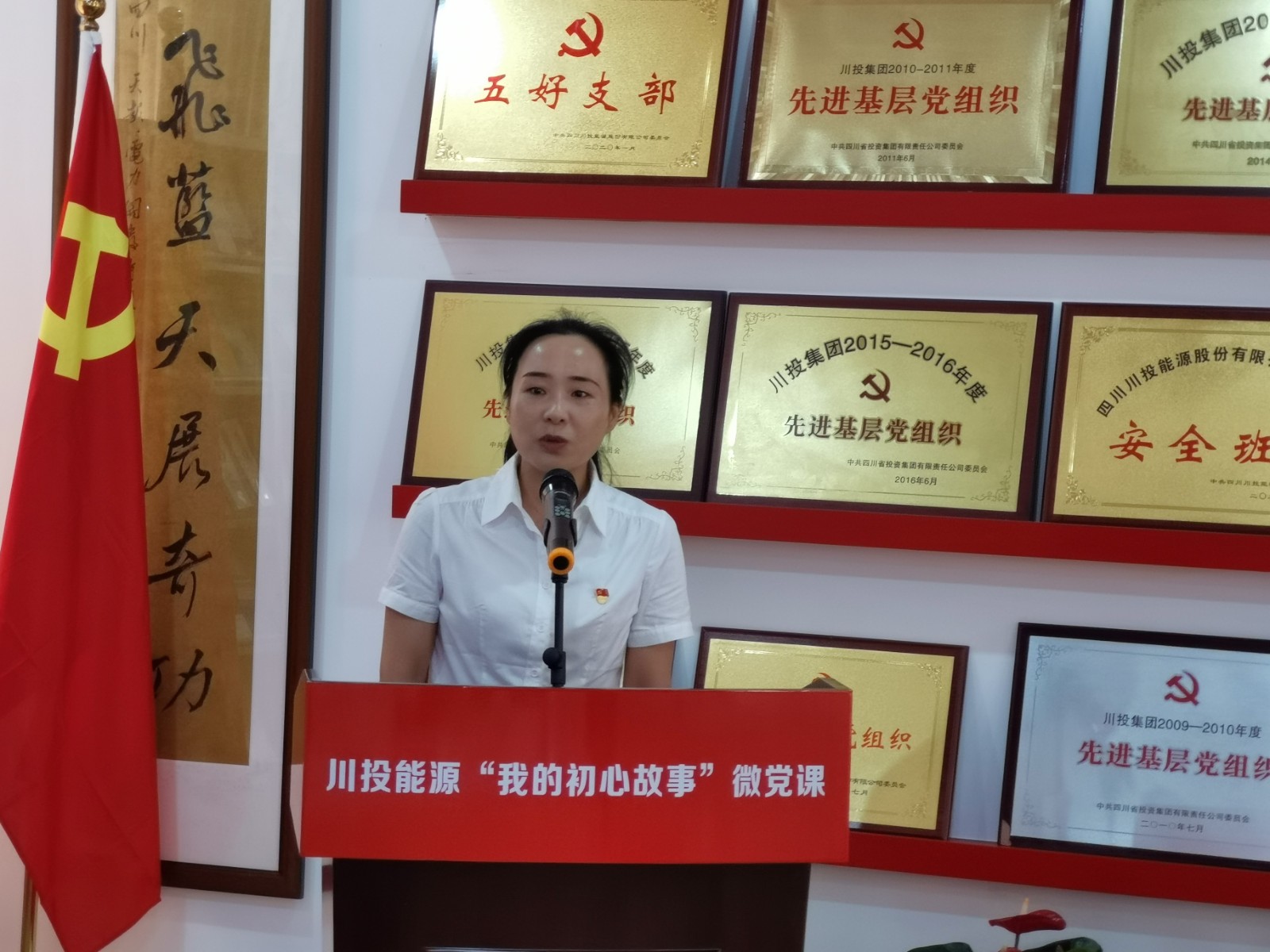 在魏華宣讀評(píng)分細(xì)則后,微黨課巡講正式拉開帷幕。來(lái)自川投電力腳基坪黨支部的李彥瑾講授的《強(qiáng)基固本打基礎(chǔ),企地共建留腳印》,讓我們驚嘆于把黨課課堂搬到農(nóng)戶、把工作干到田間地頭,甚至跨界政府、央企、國(guó)企和民企的企地共建新探索新模式;槽漁灘公司黨員鮮躍紅在《重溫創(chuàng)業(yè)史奮進(jìn)新征程》中展示了槽電人、槽電景,闡釋了槽漁灘建設(shè)者們?cè)谄D苦創(chuàng)業(yè)和脫貧攻堅(jiān)中薪火相傳、歷久彌新的“槽電精神”底蘊(yùn);攀水電公司李杰講授的《追夢(mèng)赤子心》分享了他從一名西藏邊防線老兵到川投紀(jì)檢戰(zhàn)線一名新兵的心路歷程,家事、國(guó)事,戰(zhàn)場(chǎng)、職場(chǎng),他以自己的實(shí)際行動(dòng)踐行著“川投人,心向陽(yáng)光,干凈擔(dān)當(dāng);建銀江,廉潔盡責(zé),一路芬芳”;來(lái)自能源本部的馬庚以《初心向黨志報(bào)國(guó) 田間地頭譜春秋》重溫了川投人攜手金口河彝漢兒女披荊斬棘,助力貧困山區(qū)實(shí)現(xiàn)脫貧“蝶變”奇跡的燃情歲月;交大光芒黨群工作部郭雨彤講授的《“榜樣”引領(lǐng)“我們”前行》,則從身邊平凡崗位的平凡人身上,挖掘出了他們?cè)谀瞰I(xiàn)中踐行誓言、于危難時(shí)刻敬業(yè)擔(dān)當(dāng)?shù)牟黄椒彩?;天彭電力黨員羅麗帶來(lái)的《“站友”力量 潤(rùn)物無(wú)聲》,讓特殊成長(zhǎng)經(jīng)歷孕育出的公司“站友”黨建文化,因其在領(lǐng)航聚力旗幟、傳承弘揚(yáng)精神、豐盈群眾文化方面的無(wú)窮力量,彰顯出獨(dú)具特色、內(nèi)涵豐富、生機(jī)勃勃的文化底蘊(yùn)。
