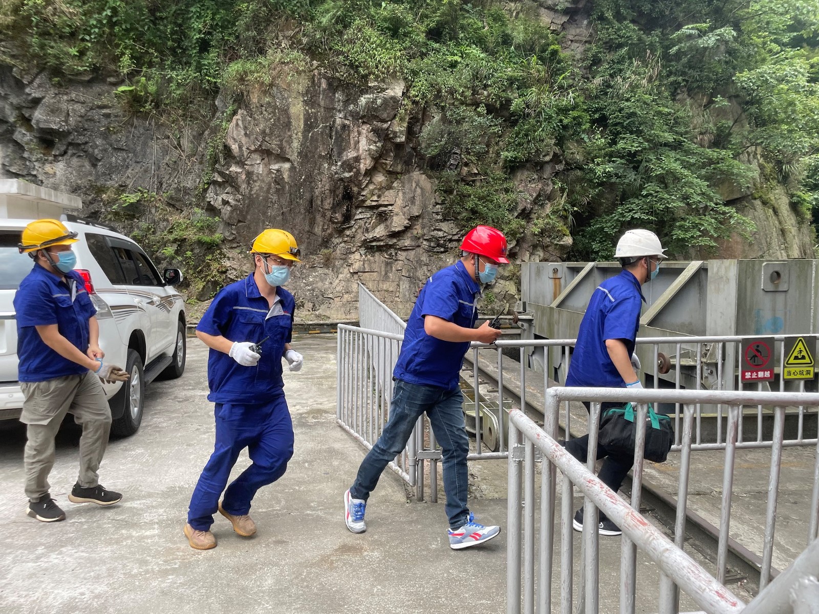 隨著演練總指揮喇叭河鎮(zhèn)副鎮(zhèn)長徐志鵬一聲令下,演練正式開始。地震警示鈴聲響起,大壩值班員迅速撤離到避險區(qū)域,待主震過后,立即開展設(shè)備設(shè)施巡視檢查,并同步開展信息上報、水庫水位控制一系列工作。演練以模擬電廠“300kW柴油發(fā)電機不能啟動”為背景,大壩參演人員匯報中控室,隨后應(yīng)急搶修組立即趕赴現(xiàn)場,對出現(xiàn)的故障進行逐一排查和縝密分析,在規(guī)定的時間內(nèi)完成了設(shè)備的搶險任務(wù)。最后,演練指揮組發(fā)出指令“腳基坪電廠大壩右岸邊坡土質(zhì)地層有飛石,竹林內(nèi)揚起沙塵,存在塌方風(fēng)險,人員立即撤離”,險情就是命令,參演人員有序、安全開始撤離,隨著最后一根警戒線布置完成,本次演練圓滿結(jié)束。