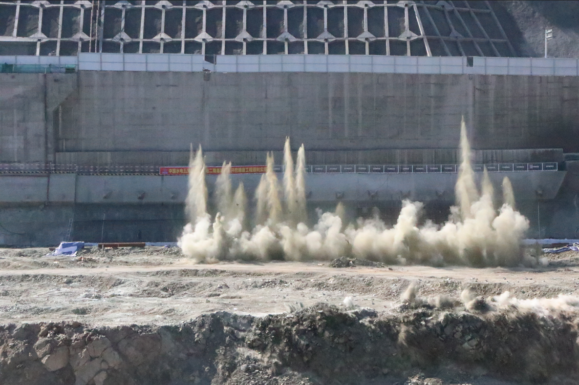 銀江水電站位于攀枝花市主城區(qū),二期基坑開挖施工外圍邊界條件復(fù)雜,左右岸各存在一條出入攀枝花市交通主干道(國道),此外,成昆鐵路渡口支線緊鄰左岸邊坡及二期基坑爆破區(qū),爆破施工屬涉鐵工程,爆破前需要辦理相關(guān)手續(xù)。公司先后多次組織參建單位召開專題會議研究涉鐵爆破事宜,施工單位積極落實審批備案手續(xù),多次往返于成都和攀枝花之間,歷經(jīng)曲折,終于在7月取得了鐵路、公安等主管部門批準(zhǔn),8月13日16點30分,隨著一聲巨響,二期基坑土石方開挖成功迎來“首爆”,主體工程建設(shè)正式邁入“快車道”。