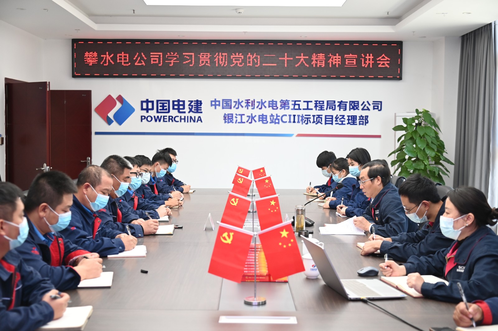 根據(jù)川投集團黨委、川投能源黨委有關(guān)要求和攀水電公司黨總支工作安排,為進一步學習宣傳貫徹黨的二十大精神,激勵銀江水電站參建單位全面學習、全面把握、全面落實黨的二十大精神,12月1日上午,川投能源副總經(jīng)理、攀水電公司黨總支書記、董事長、攀新能源公司董事長徐孝剛到聯(lián)建支部水電五局銀江項目黨支部進行黨的二十精神專題宣講。水電五局銀江項目黨支部全體黨員、入黨積極分子、職工代表共計20余人參加此次宣講會。