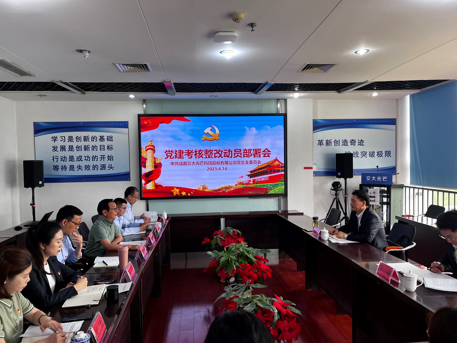 根據(jù)川投能源黨委抓基層黨建工作述職點(diǎn)評(píng)意見整改工作方案和對(duì)交大光芒黨總支2022年度黨建工作的點(diǎn)評(píng)意見,交大光芒黨總支舉一反三查找問題和不足并針對(duì)性制定整改方案,于2023年4月14日召開黨建考核整改動(dòng)員部署會(huì)。川投能源黨委副書記、工會(huì)主席冉蘭平,團(tuán)總支書記李睿到會(huì)督導(dǎo)。黨總支書記、總經(jīng)理劉成輝主持會(huì)議并作整改動(dòng)員講話。