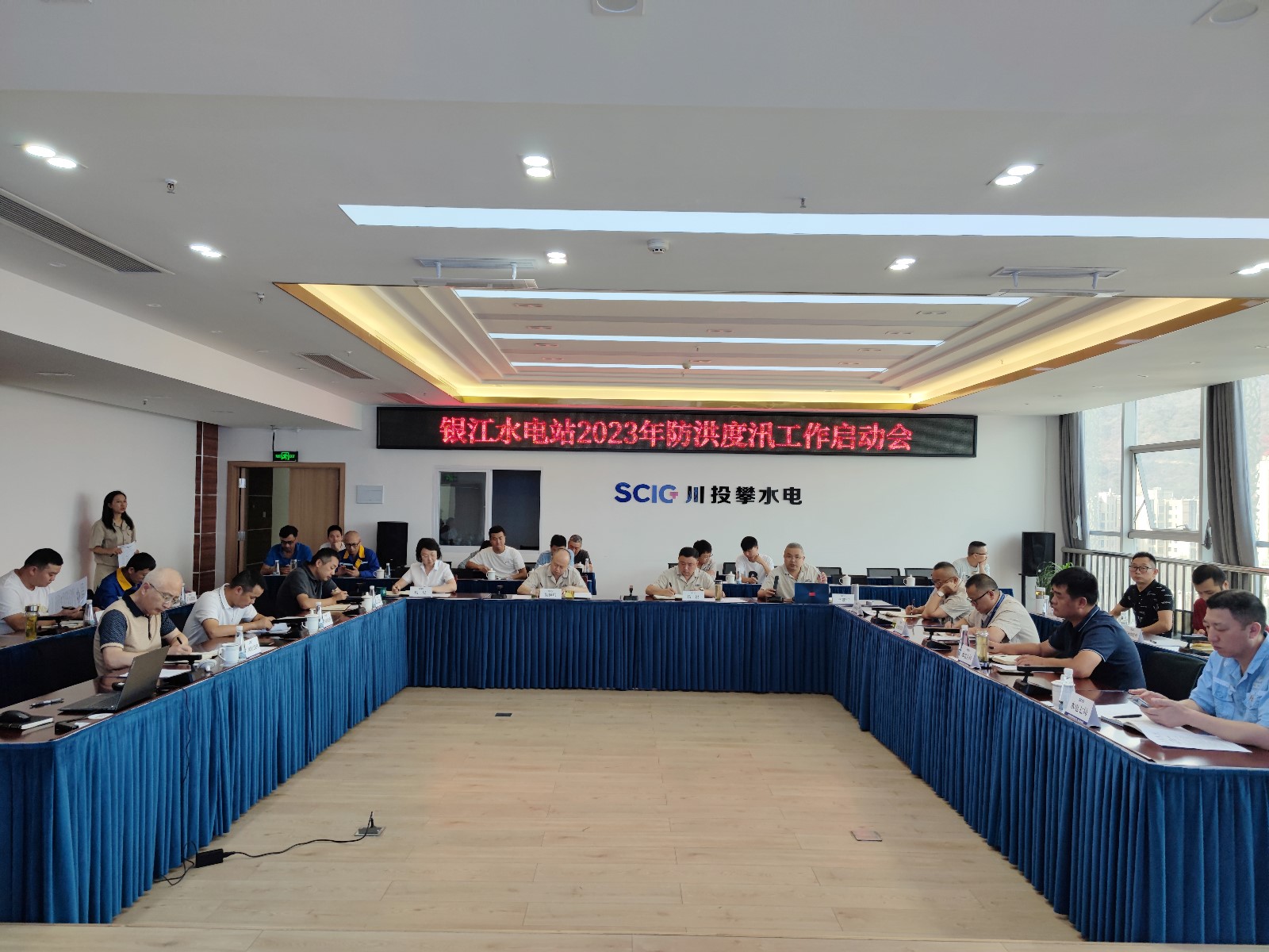 4月23日,公司組織各參建單位在2620會(huì)議室召開了銀江水電站2023年防洪度汛工作啟動(dòng)會(huì),會(huì)議由公司總經(jīng)理助理、工程管理部經(jīng)理、防汛防地災(zāi)領(lǐng)導(dǎo)小組辦公室主任嚴(yán)瑞平主持,公司黨總支副書記、總經(jīng)理、防汛防地災(zāi)領(lǐng)導(dǎo)小組組長(zhǎng)吳巍嶼,公司黨總支委員、紀(jì)檢小組長(zhǎng)、防汛防地災(zāi)領(lǐng)導(dǎo)小組副組長(zhǎng)楊銳等領(lǐng)導(dǎo)出席會(huì)議。公司工程管理部、安全環(huán)保部、征地移民部部門負(fù)責(zé)人,各參建單位項(xiàng)目負(fù)責(zé)人、分管生產(chǎn)、安全工作負(fù)責(zé)人參加會(huì)議。