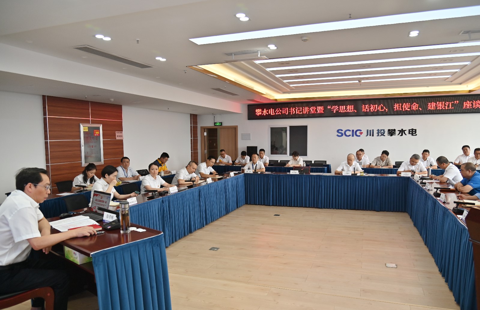 為扎實推進學習貫徹習近平新時代中國特色社會主義思想主題教育走深走實,以思想偉力凝聚起干事創(chuàng)業(yè)的強大動力,7月8日,攀水電黨總支組織開展書記講堂暨“學思想、話初心,擔使命、建銀江”座談會,由川投能源副總經(jīng)理、攀水電黨總支書記、董事長徐孝剛講授專題黨課,公司全體黨員、非黨中干、統(tǒng)戰(zhàn)對象、青年職工,聯(lián)建支部書記、黨員代表共計40余人參加。