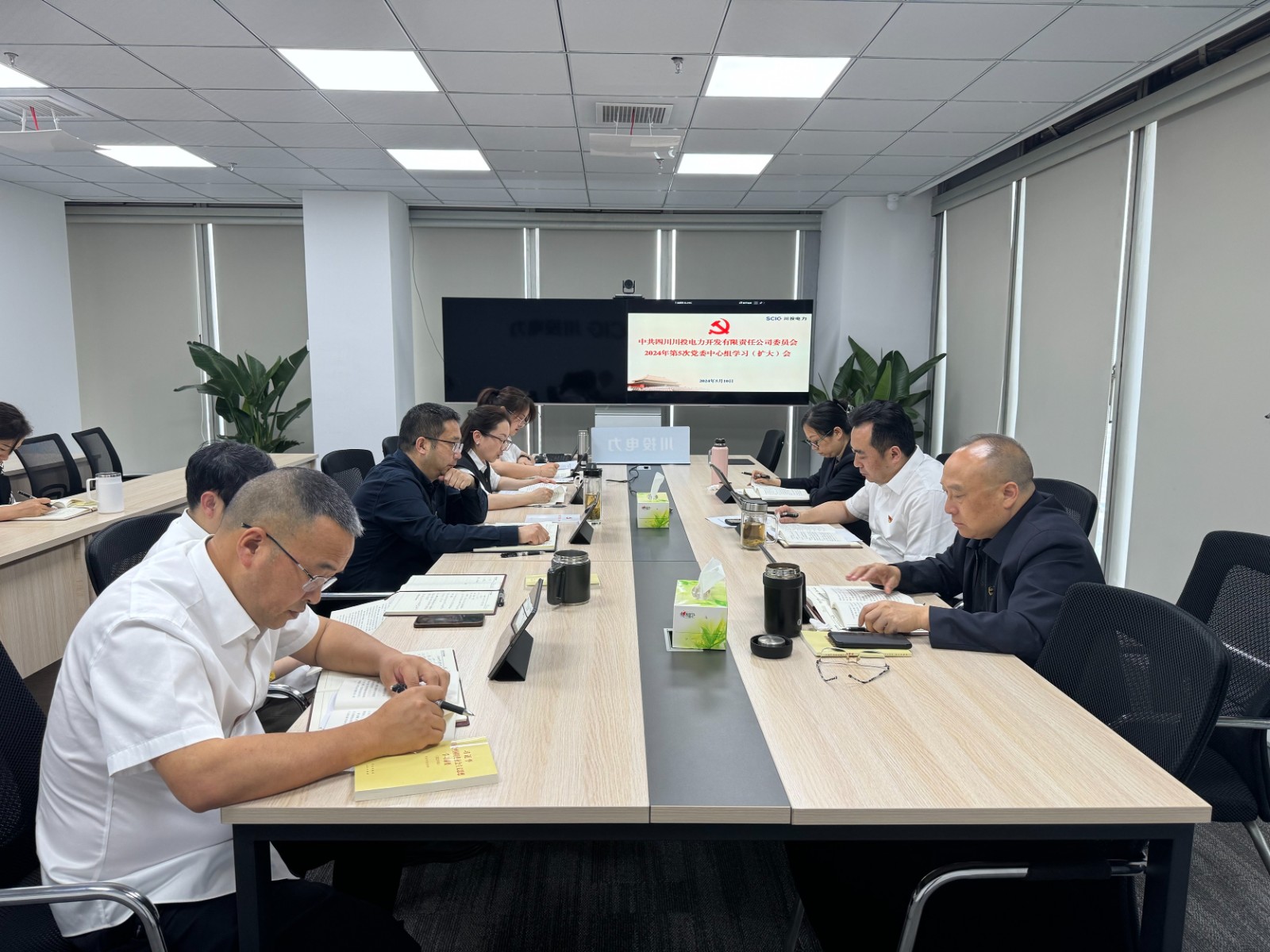5月10日,川投電力黨委理論學習中心組召開2024年第5次學習(擴大)會議。公司黨委書記、董事長楊濤主持會議并結(jié)合工作實際提出工作要求。公司領導班子成員、黨群工作部、紀檢工作部負責人參加學習。