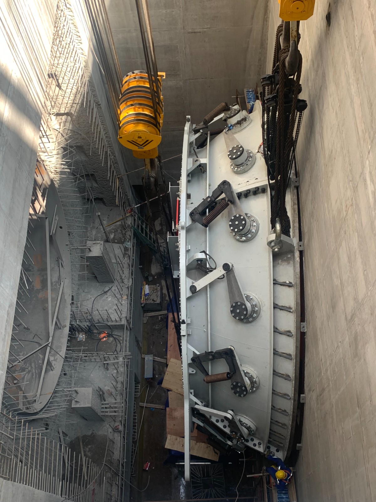 川投能源副總經(jīng)理,攀水電公司黨總支書記、董事長徐孝剛親臨現(xiàn)場指揮,各參建相關(guān)單位主要負(fù)責(zé)人落實具體工作,認(rèn)真開展吊裝前安全技術(shù)交底,組織專業(yè)人員對導(dǎo)水機構(gòu)、廠房橋機及起重吊裝工具進(jìn)行全面檢查,吊裝過程中嚴(yán)格按照規(guī)定程序操作,實時調(diào)整設(shè)備位置,歷經(jīng)8個小時,1#機組導(dǎo)水機構(gòu)順利平穩(wěn)翻身,安全吊裝就位。