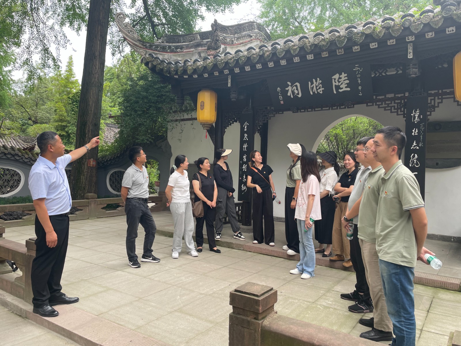 最后,全體人員前往崇州罨畫池廉潔文化教育基地,參觀我國著名愛國詩人陸游祠堂、瞻仰陸游塑像、鑒賞陸游愛國詩詞書畫展、佇足放翁家訓(xùn)館學(xué)習(xí)優(yōu)秀家風(fēng)文化,支部書記王輝同志以《汲取中國傳統(tǒng)優(yōu)秀文化精髓涵養(yǎng)遵紀(jì)清廉新時(shí)代精神》為題給黨員上廉潔教育黨課。