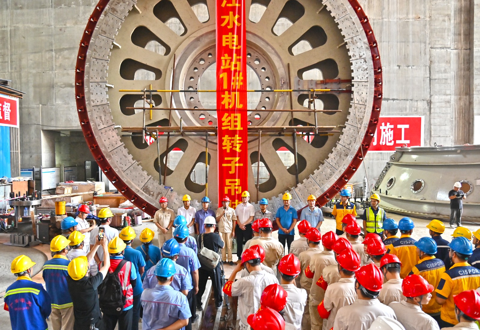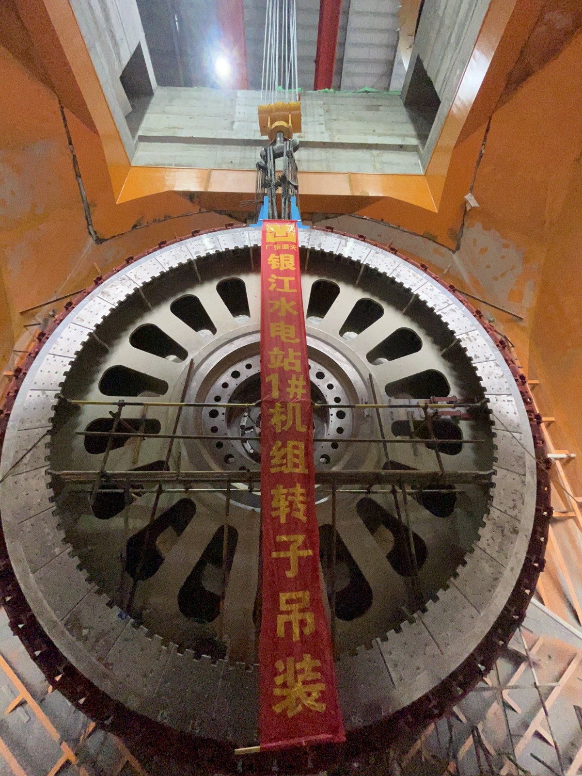 8月25日下午,銀江水電站首臺機組轉(zhuǎn)子順利吊入機坑并與機組主軸連接就位。