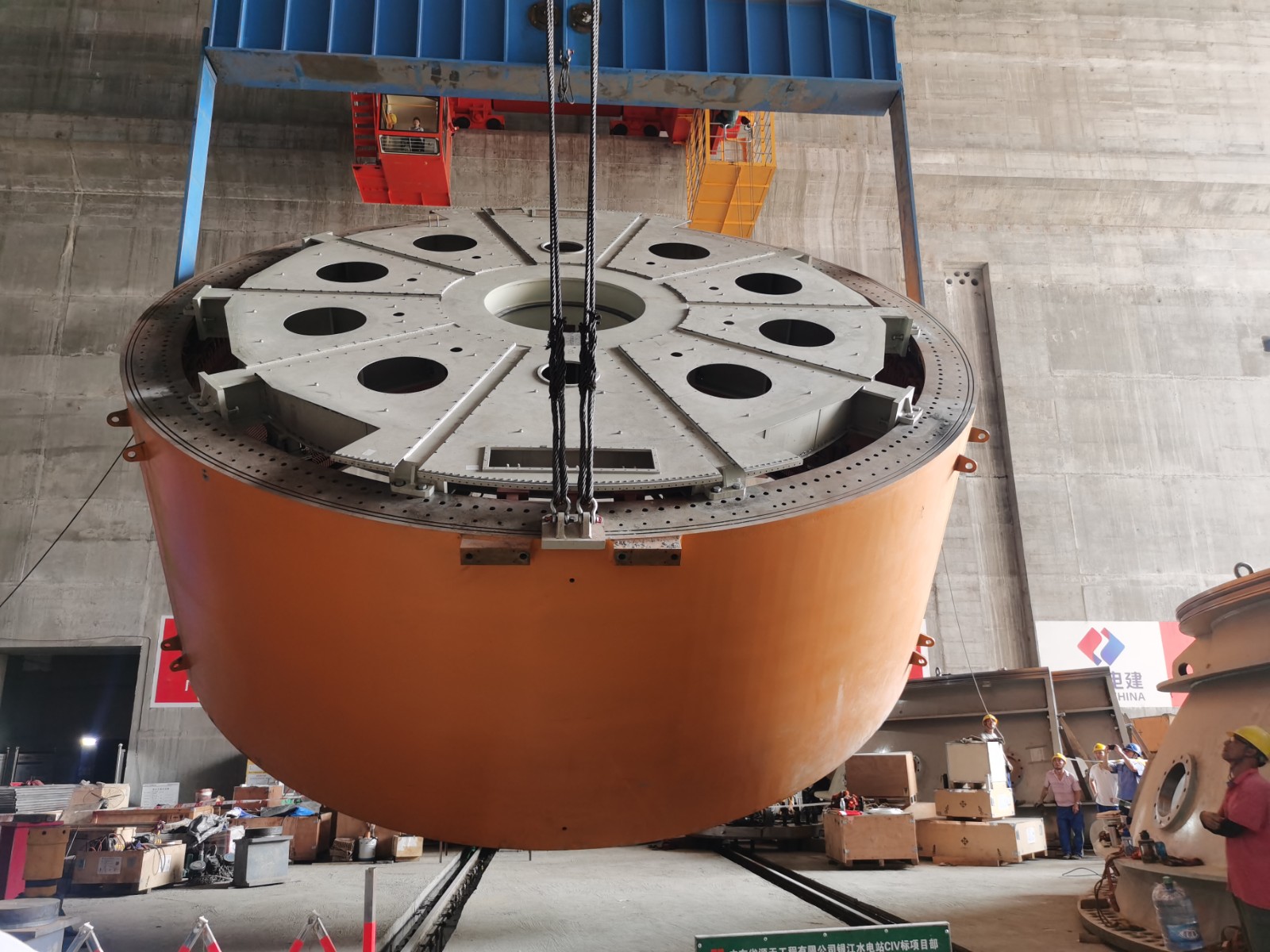 穩(wěn)中求快,加速建設。在銀江水電站的建設現(xiàn)場,機器轟鳴,焊花四濺,一片繁忙景象。攀水電公司在確?!胺€(wěn)”的堅實基礎上,積極踐行“快”的要求,以只爭朝夕的緊迫感,全力加快項目建設進度。隨著機電安裝作業(yè)面的全面鋪開,工期緊、任務重的挑戰(zhàn)擺在眼前,攀水電公司果斷采取一系列有力措施,加大人員和設備投入,增加施工班組,延長作業(yè)時間,提高工作效率。2024年8月29日下午,在銀江水電站的機電安裝現(xiàn)場,氣氛熱烈而緊張,隨著定子的精準吊裝到位,標志著首臺機組安裝取得了重大進展。目前銀江水電站首臺機組導水機構、主軸、組合軸承、轉輪、定子、轉子均已安裝就位,為后續(xù)機組的調試和投產奠定了堅實的基礎。