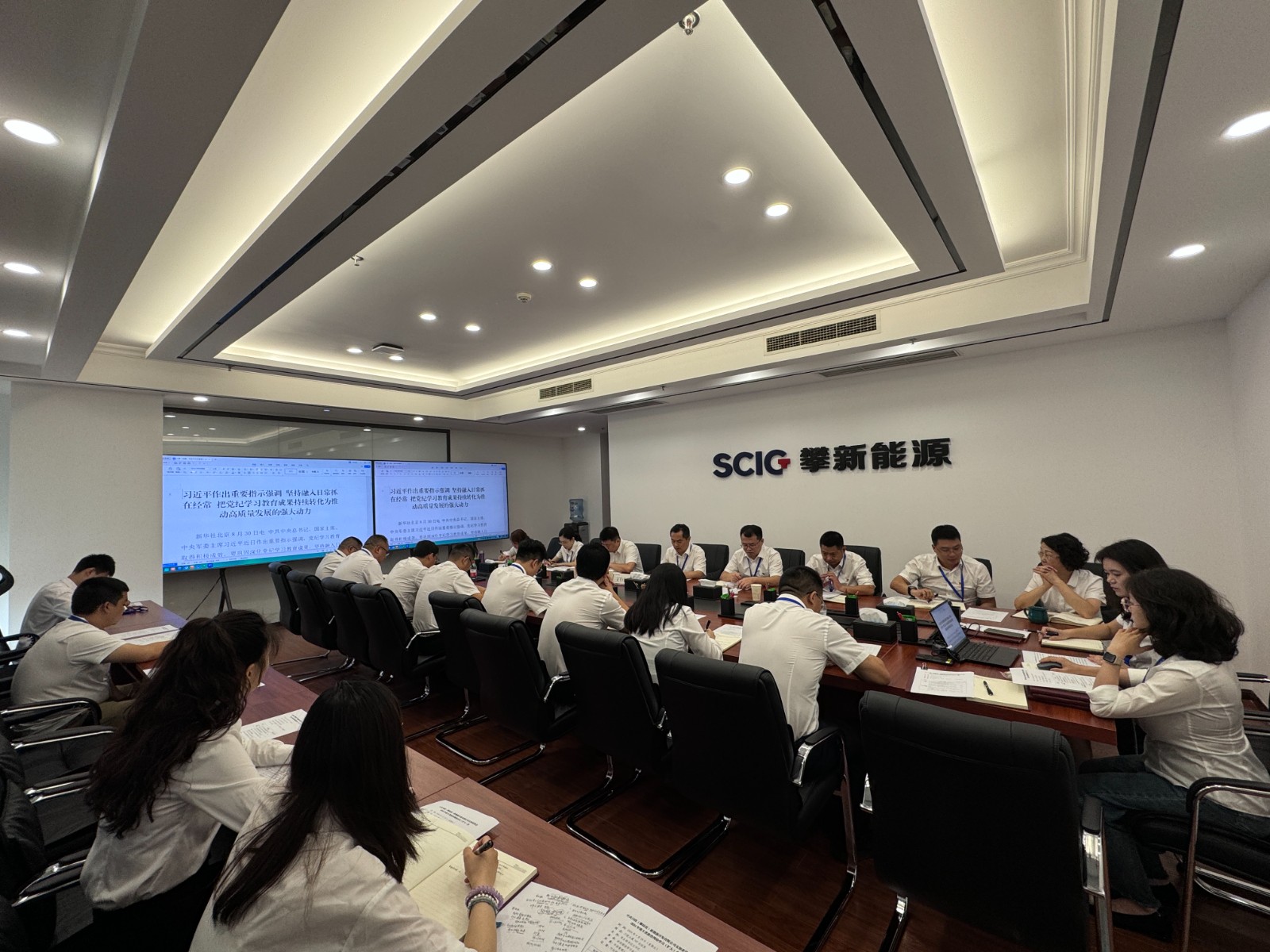 9月20日,攀新能源公司黨支部召開2024年第8次政治理論學習(擴大)會,公司黨支部書記、董事長王行仁主持會議并領學。會議傳達學習了《習近平總書記主持中共中央政治局會議精神》《習近平總書記主持中共中央政治局召開的分析研究當前經濟形勢和經濟工作會議精神》《關于印發(fā)吳曉曦董事長、李文志總經理在2024年上半年經濟運行分析會上講話的通知》《川投集團關于開展2024年“全民國防教育月”活動的通知》以及傳達川投集團2024年上半年經濟運行分析會會議精神等內容,會上集中學習并研討四川省國資委系統(tǒng)違紀違法案件警示教育讀本《知紀法守底線》中違反政治紀律相關案例,集中觀看警示教育視頻:《蜀地清風繭變》。