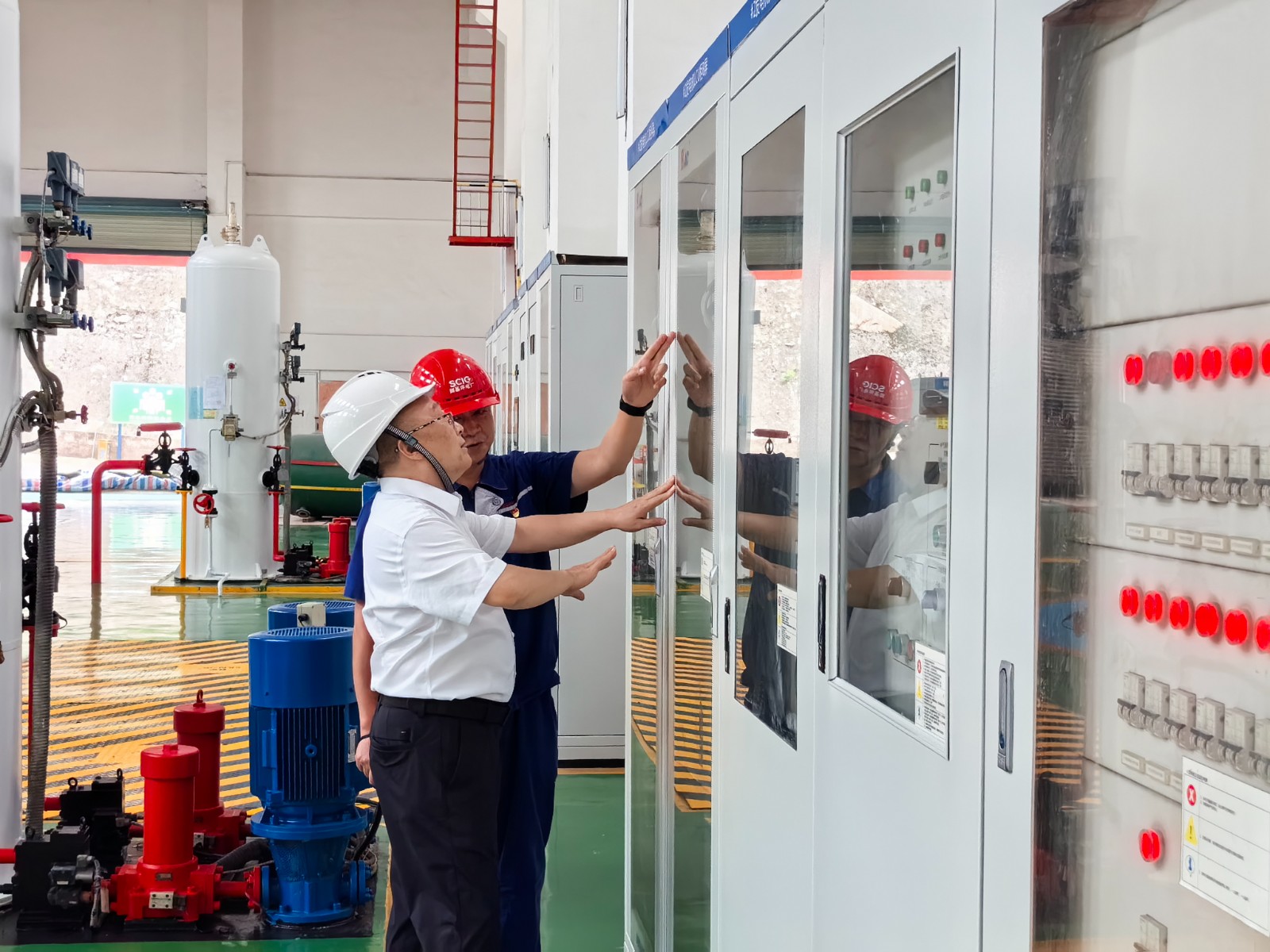 蔡承德一行深入廠房、大壩等一線生產(chǎn)區(qū)域,仔細查看電廠生產(chǎn)設(shè)備、防汛設(shè)施的運行狀況,抽查電廠防汛值班的落實情況。在檢查過程中,蔡承德特別強調(diào)防汛減災(zāi)工作的重要性,要求電廠嚴格落實防洪搶險措施,加強值班值守,確保迅速響應(yīng)、有效處置。同時,還詢問電廠對有限空間作業(yè)、高風險區(qū)域作業(yè)等特殊作業(yè)的風險防控措施,要求電廠必須嚴格遵守相關(guān)安全規(guī)程,確保作業(yè)人員的安全。